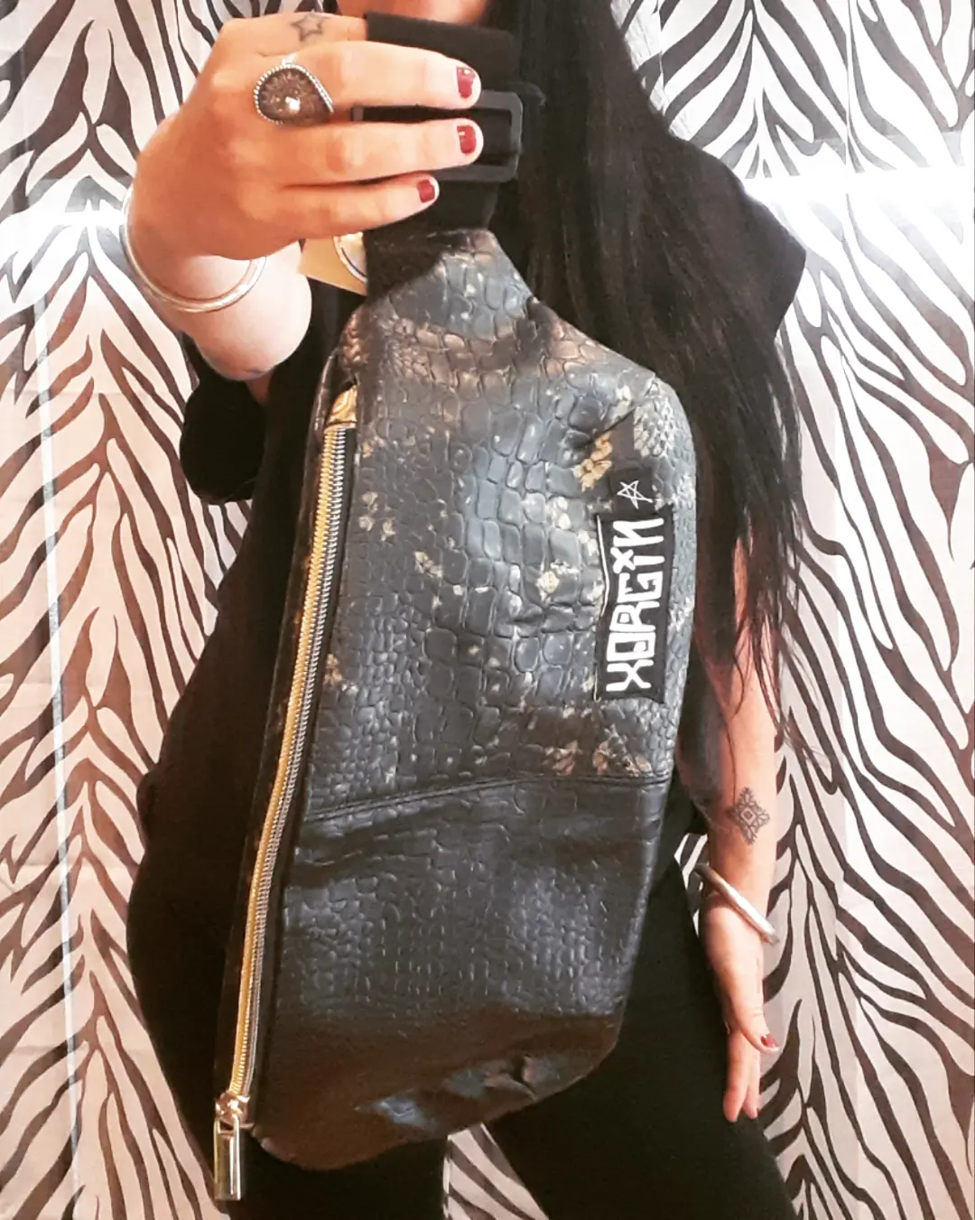 CUIR VEGAN BI-COLOR REPTILE BLACK/ REPTILE BLACK GOLD