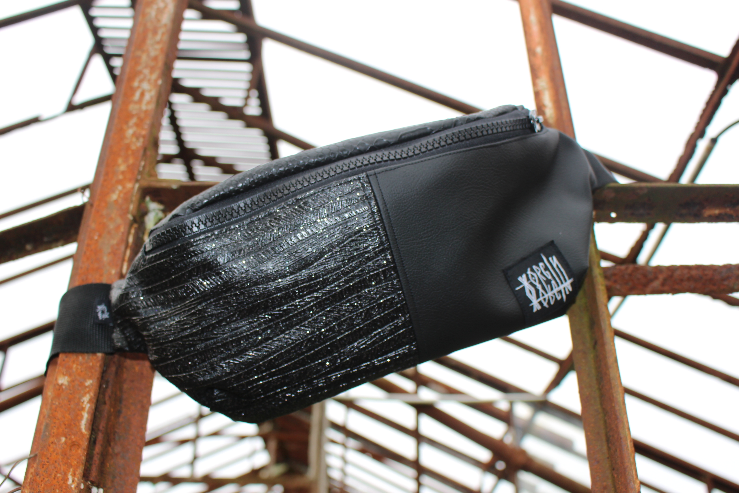 Bi colore : Cuir vegan GLITTER / BLACKGOM