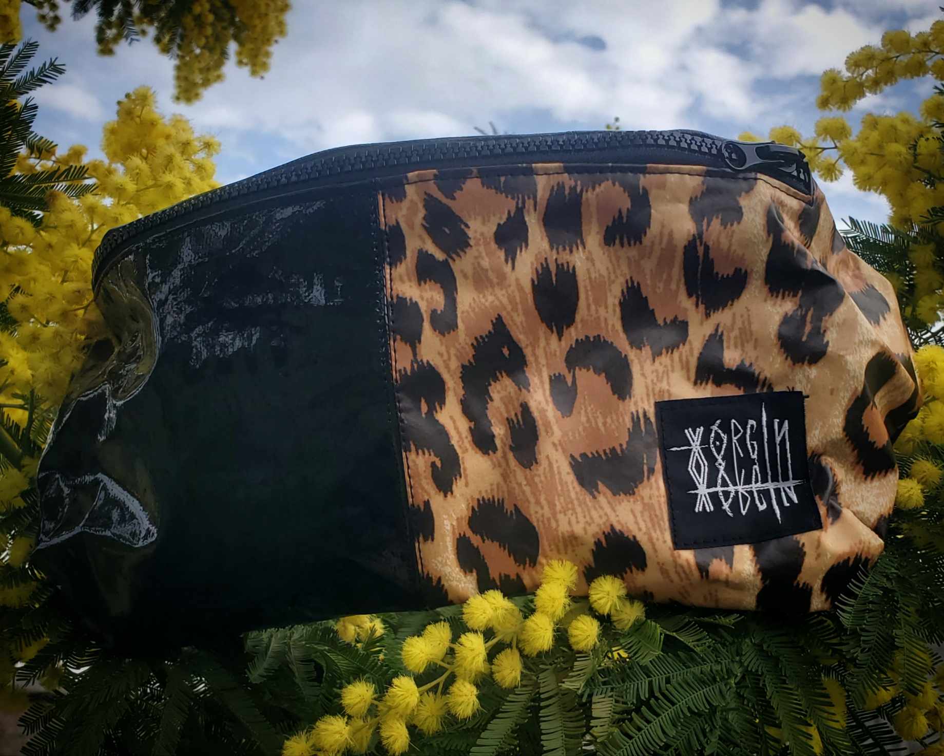 Devant du sac banane / Toile cirée Noire et Toile léopard