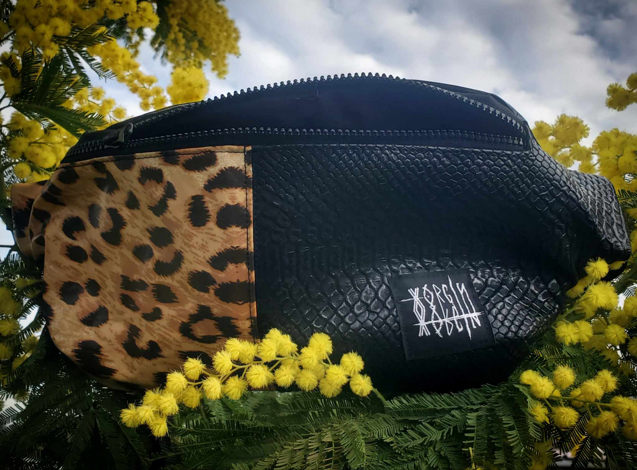 Devant du sac banane / KOMODO NOIR et Toile léopard