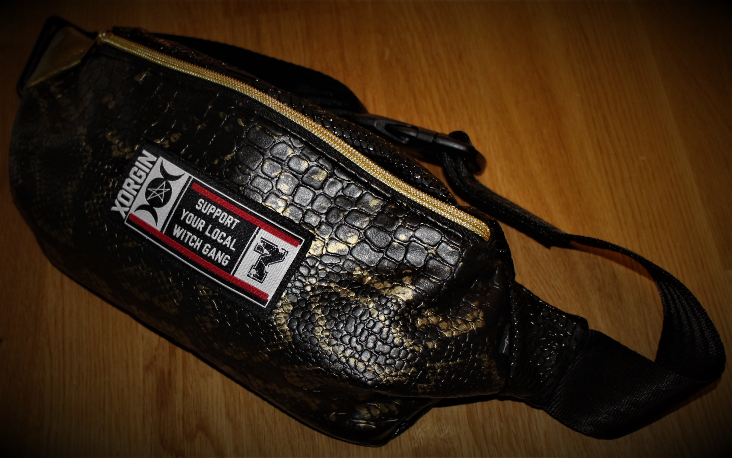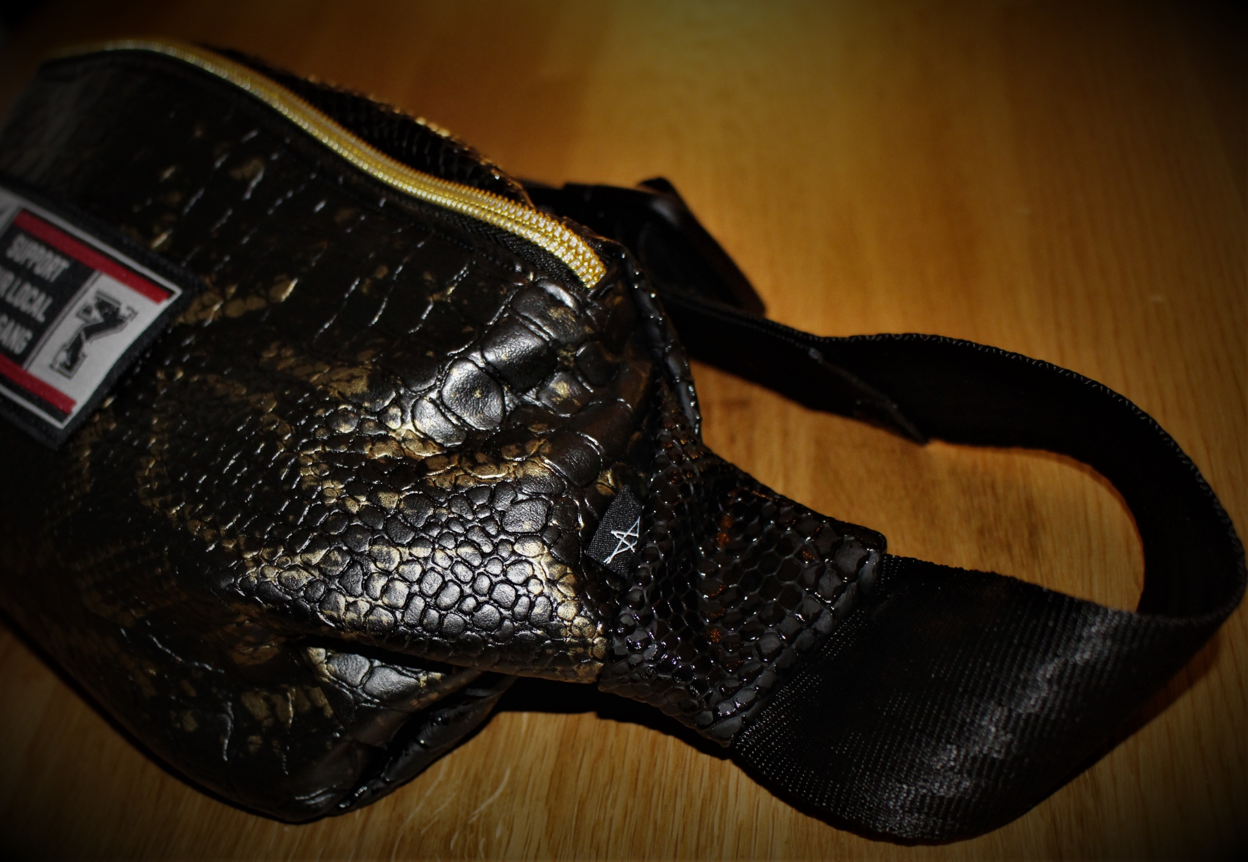 Banane: Devant: Croco Noir GOLD/ avec rabat Reptile Black Glitter/ Dos : Croco Noir