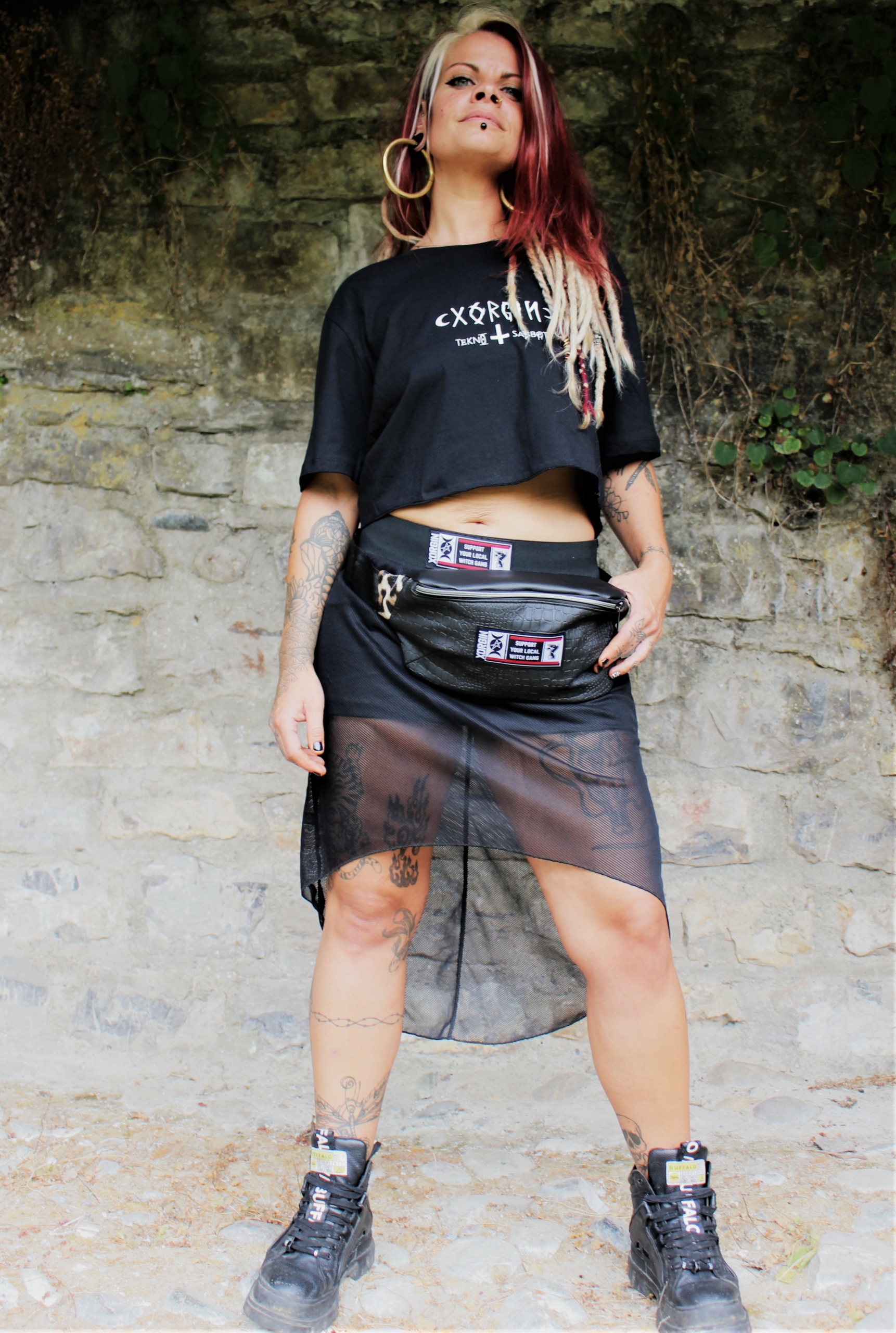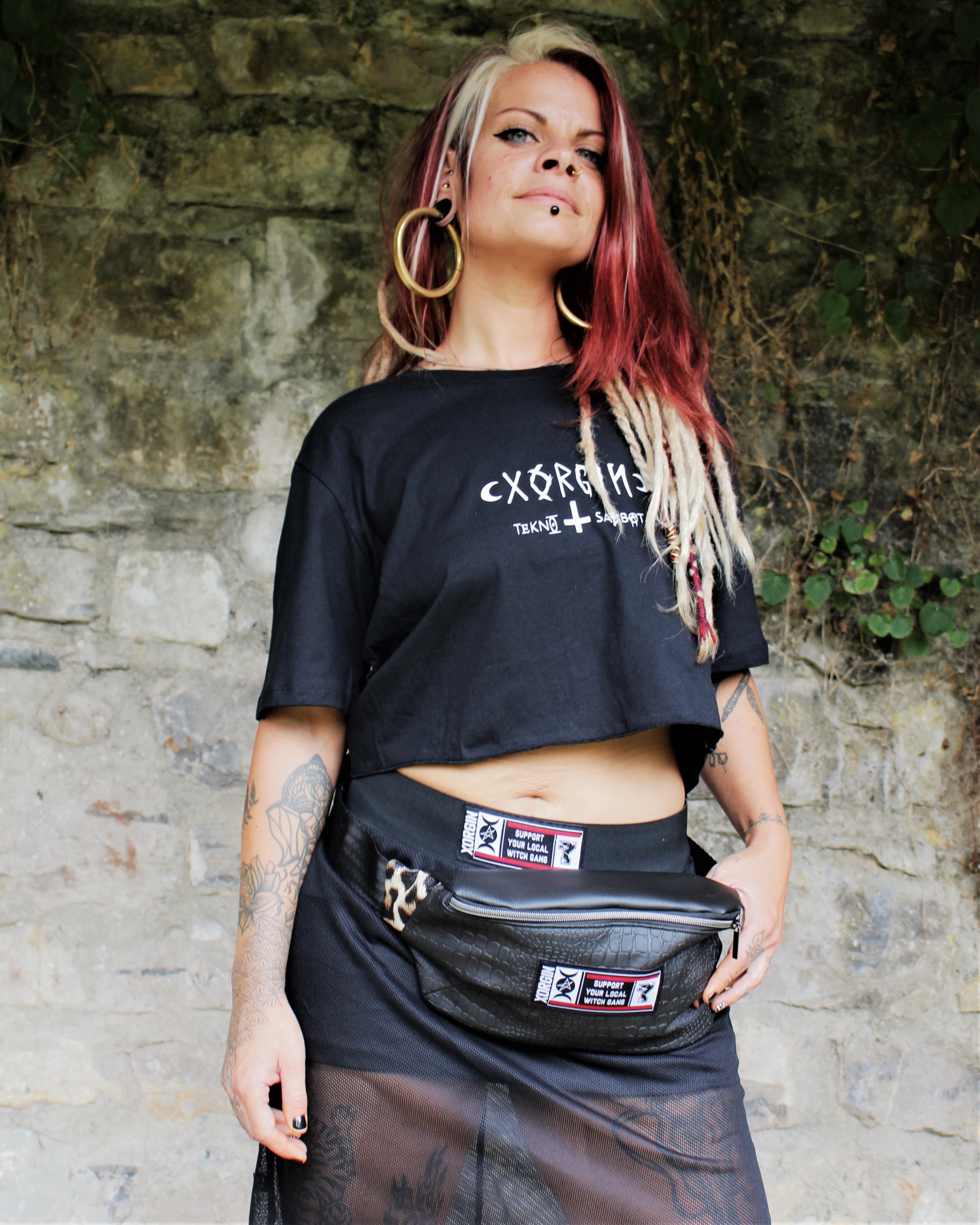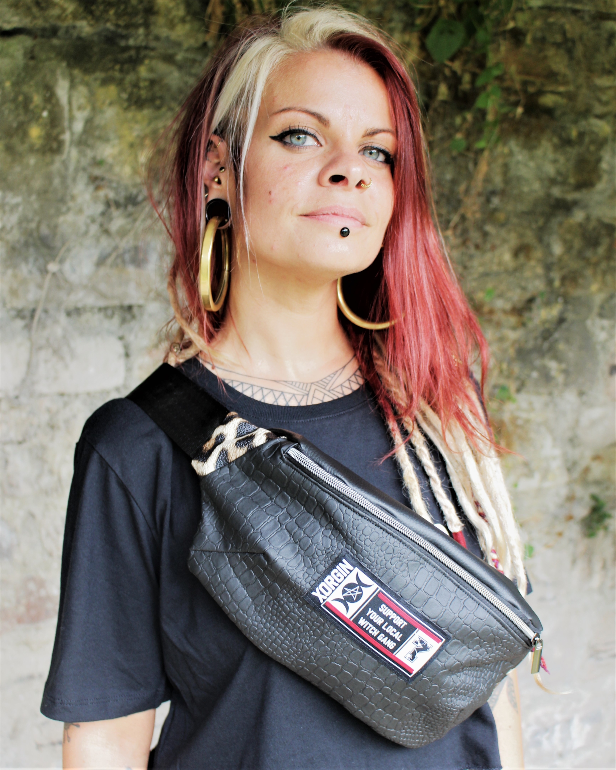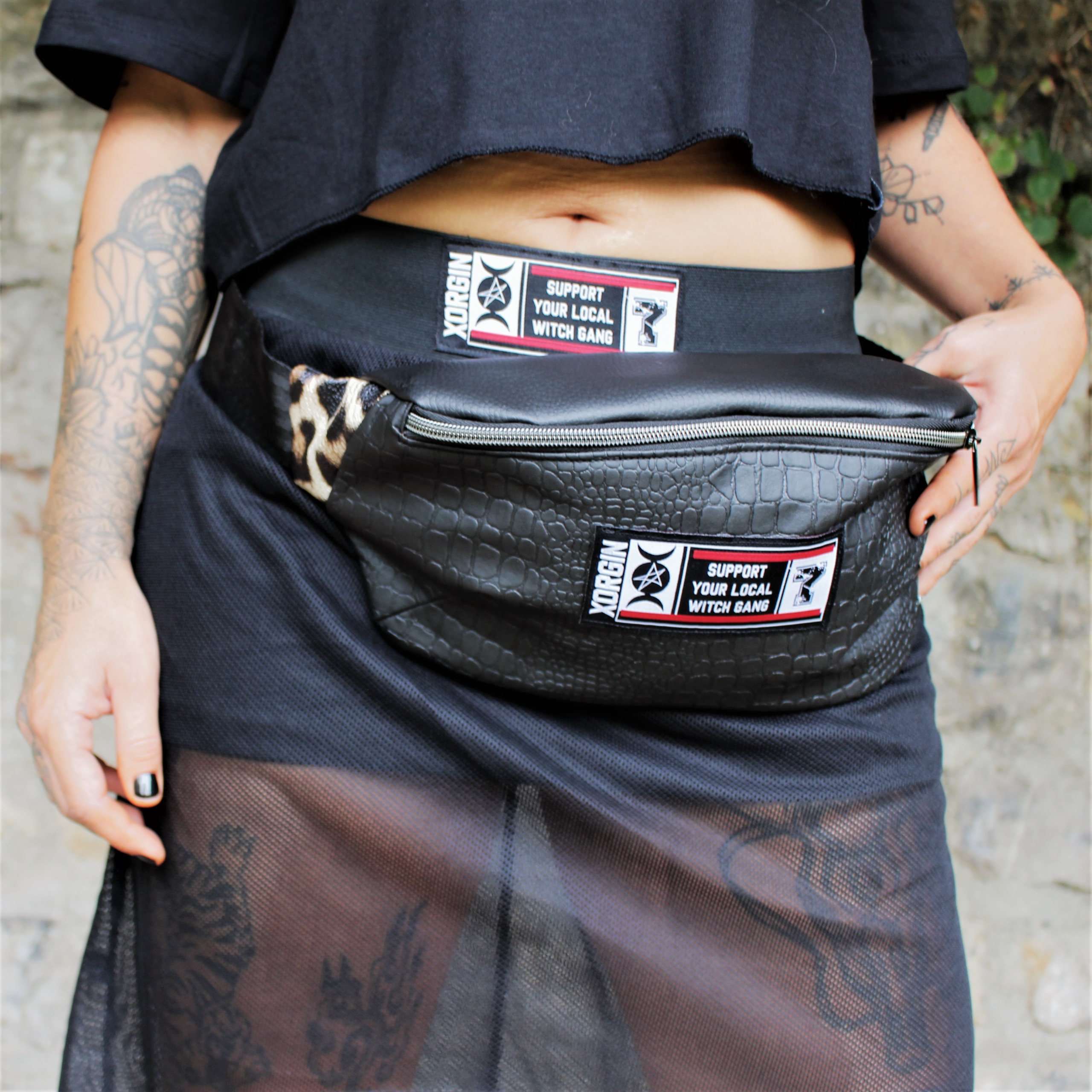 Banane Croco Noir Mat / avec rabat Cuir végan Noir mat / Côté Léo