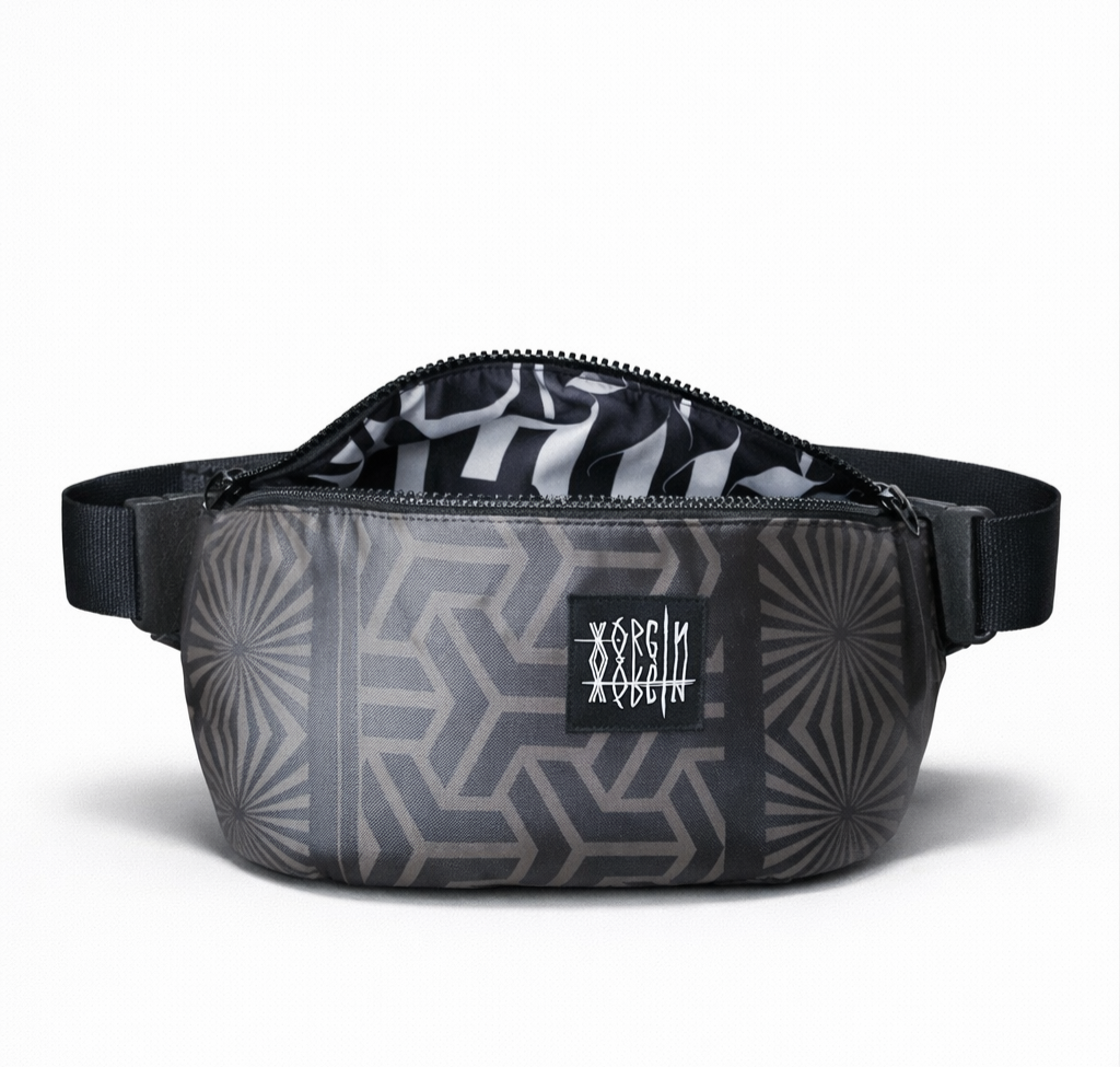 Le design graphique apporte élegence et style alt , faisant de cette banane un accessoire incontournable pour rave outfit et looks underground couture.