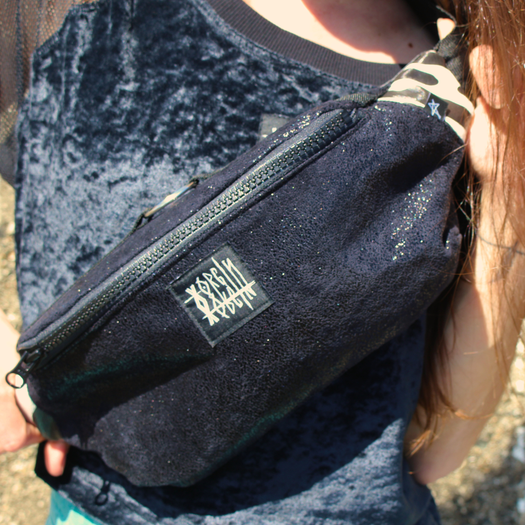 Banane Etanche en tissus effet faux cuir Shiny ( brillant ) côté zebre Noir et Blanc