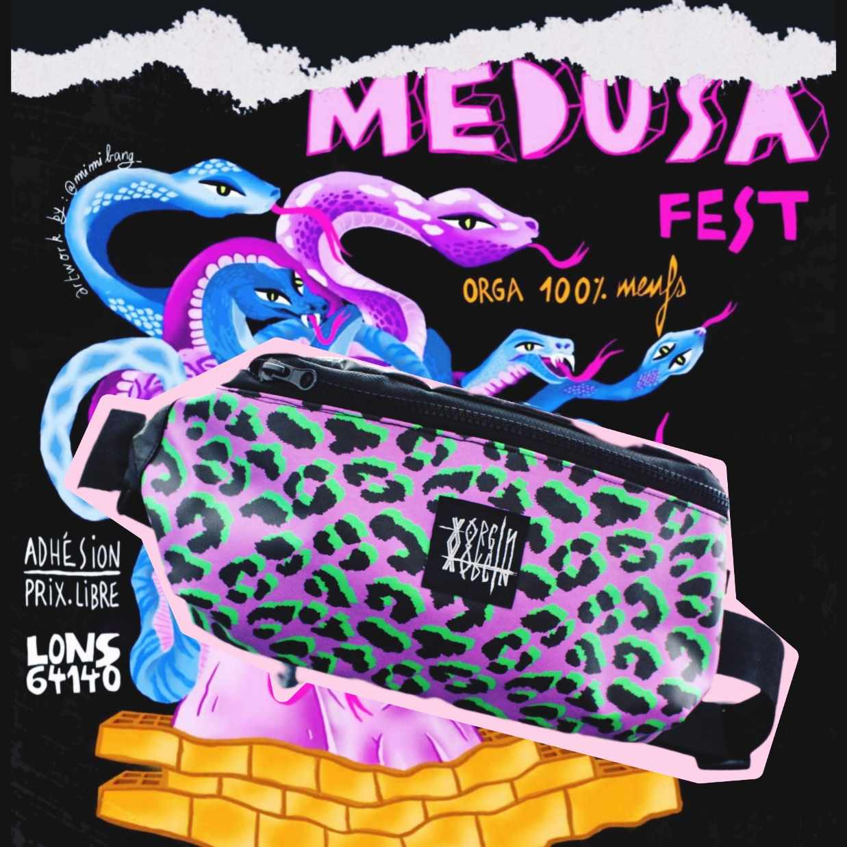 La banane OKKULT HANDMADE décliné dans un nouveau coloris pour le FESTIVAL FEMINISTE organisé par le collectif RETIENS LA NUIT – MEDUSA FEST