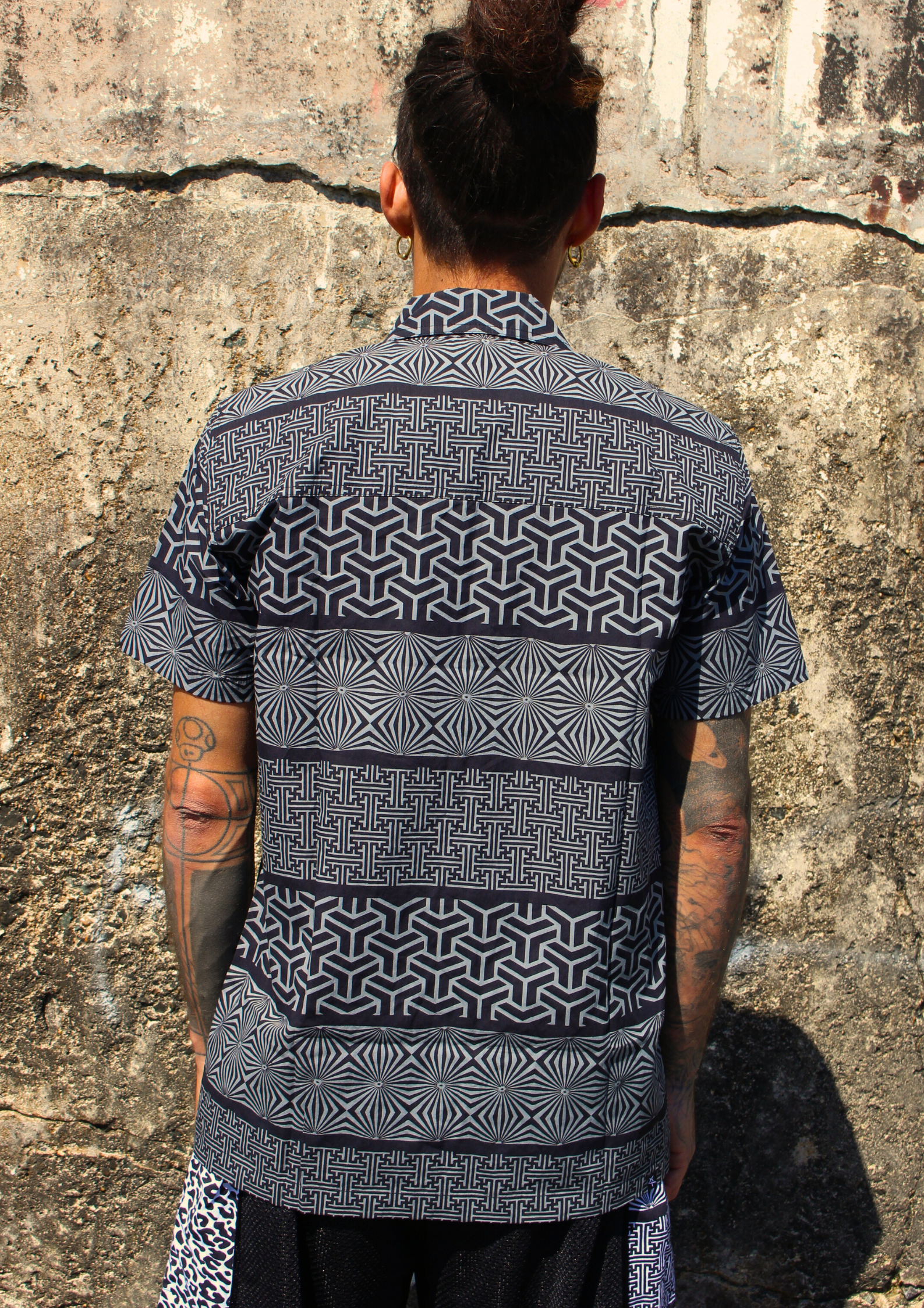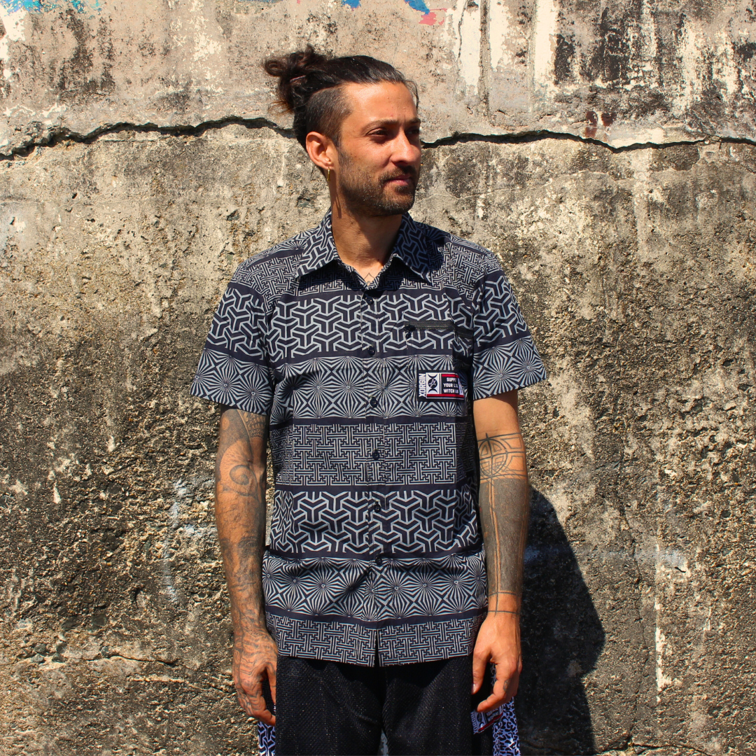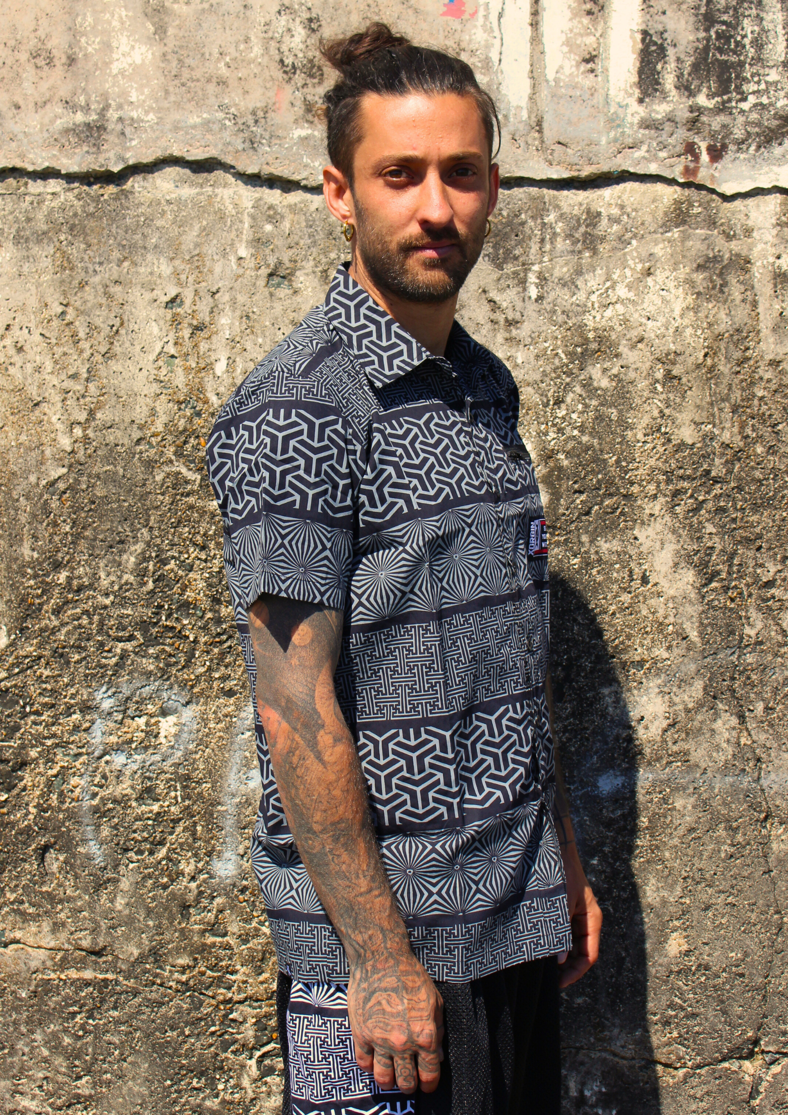 Popeline 100% cotton imprimé noir sur Gris MystikPattern , allover exclusif by XORGIN