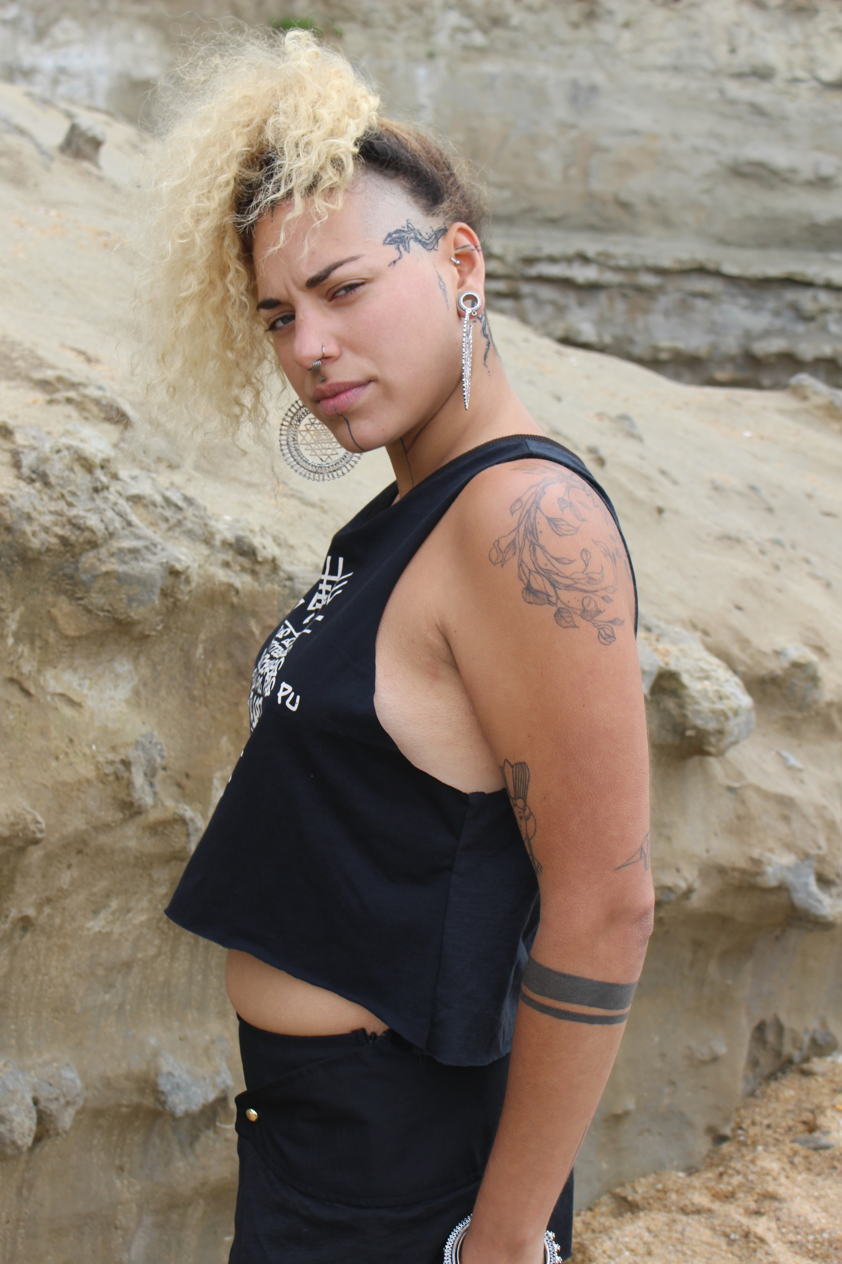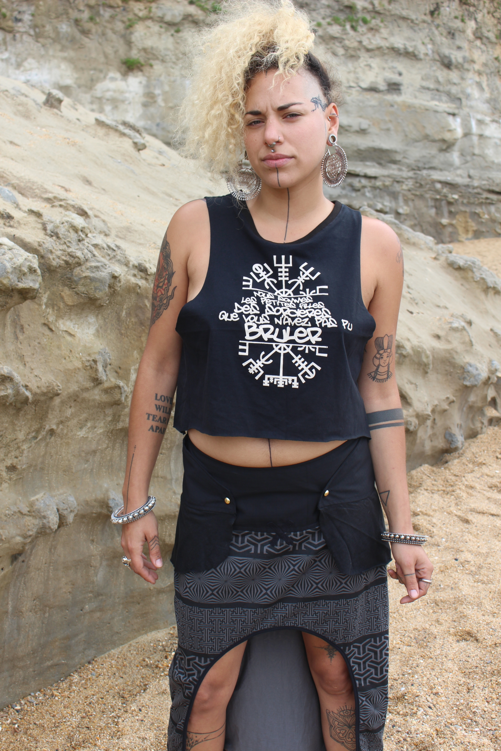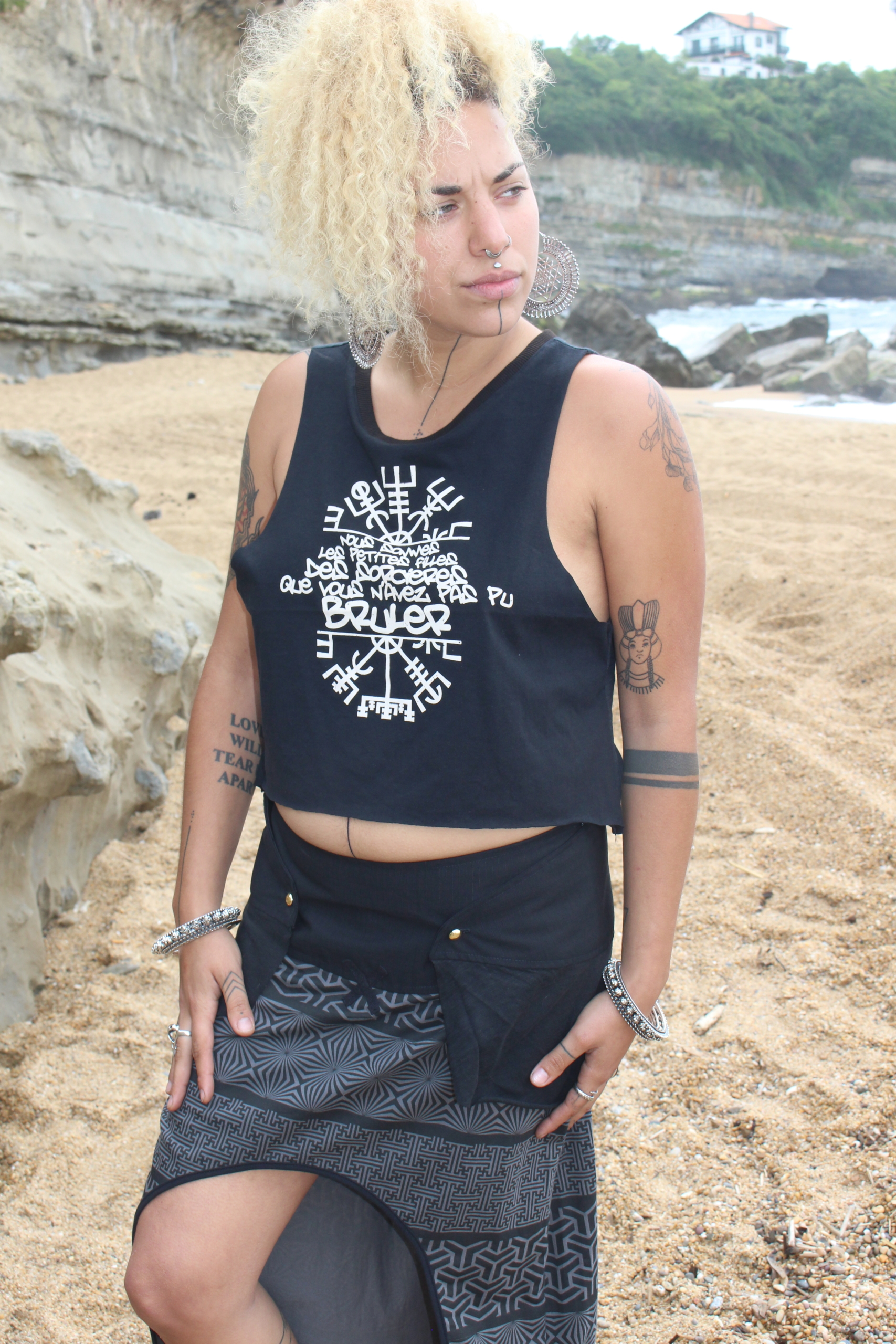 Crop Top BURN Black sérigraphié « Nous sommes les petites fille des sorcière que vous n’avez pas pû bruler »