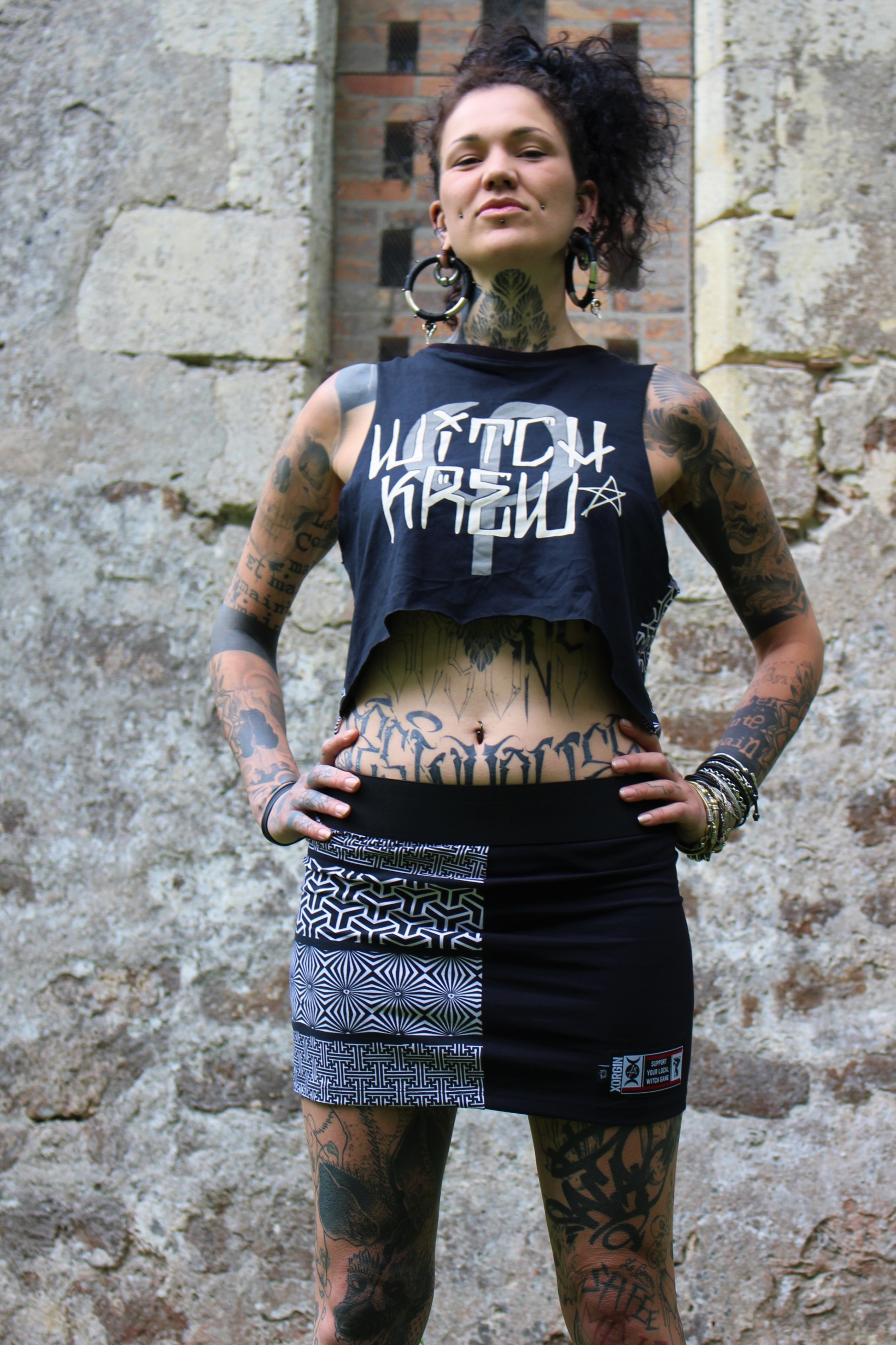 Crop Top KREW Black/ Pattern