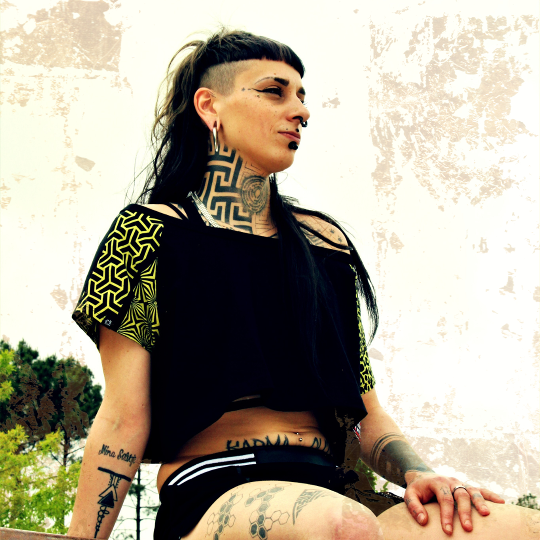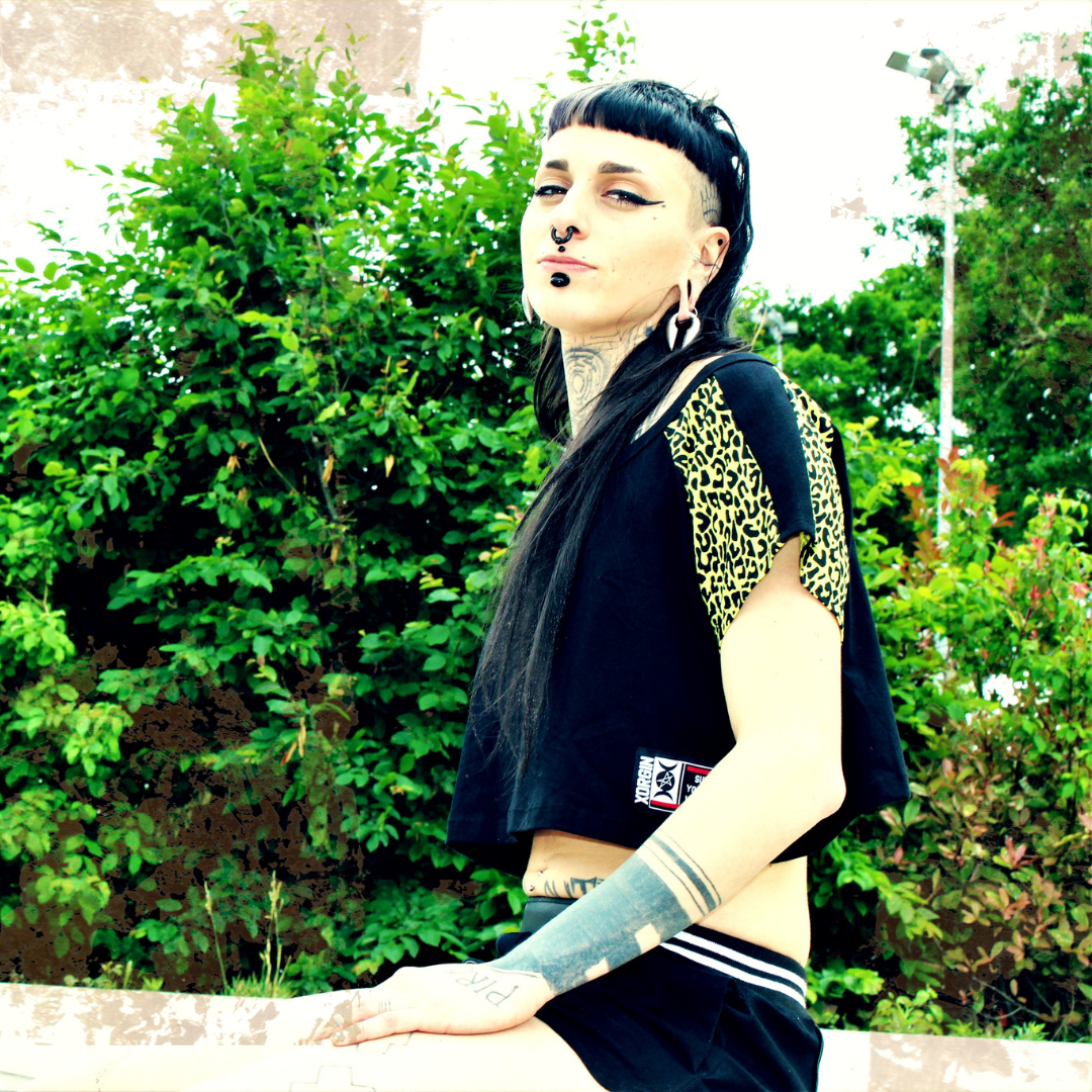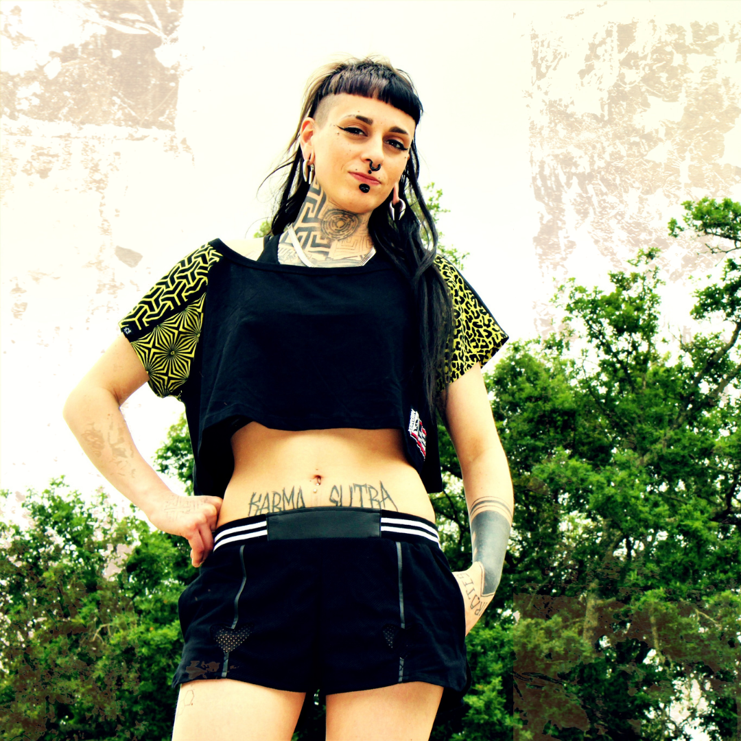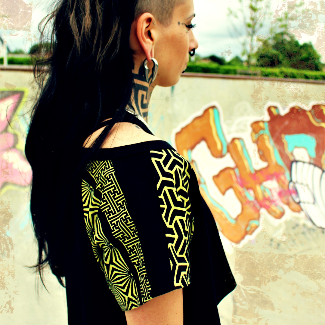 Noir avec une manche Léopard Noir Jaune et l’autre Pattern Noir Jaune
