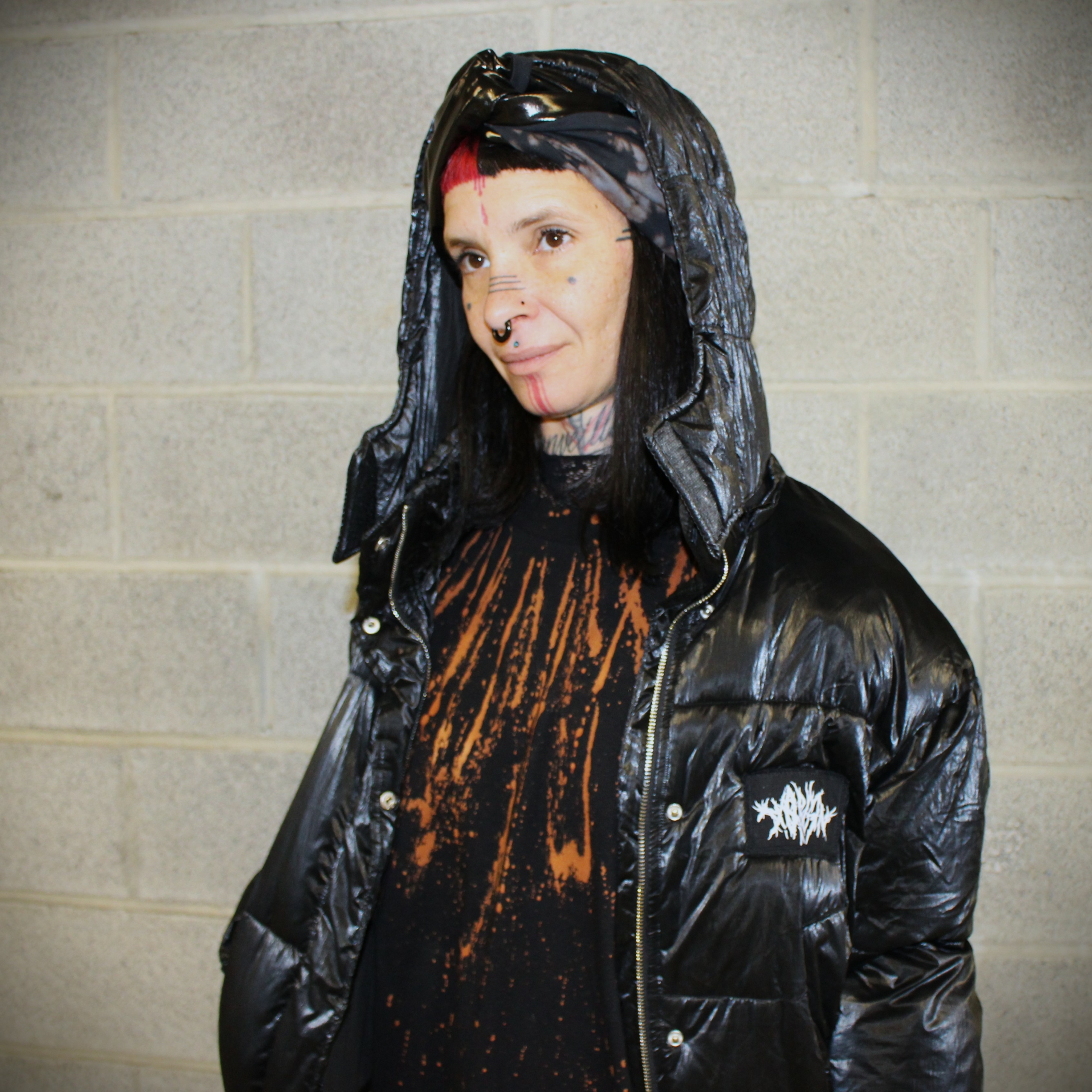 Pièce unique, Doudoune TRASH XORGIN WEAR. Effet froissé, big patch XORGIN Slogan. Style teuf, rave, streetwear et éco-responsable.
