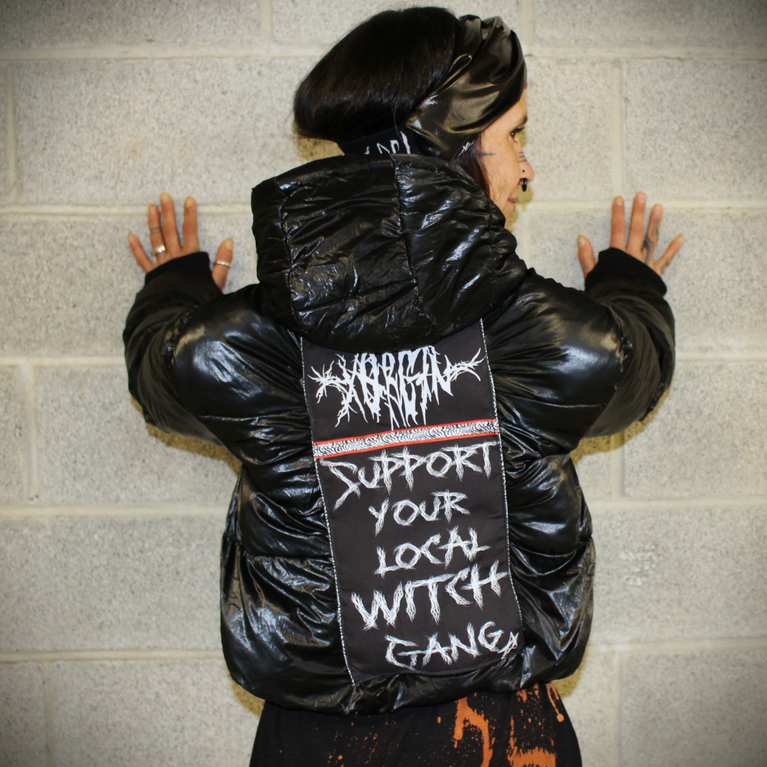 Style Franc et witch power avec la Doudoune TRASH de XORGIN WEAR. Avec son effet froissé et son big patch XORGIN Slogan, cette pièce unique allie design créateur, upcycling et attitude urbaine.
