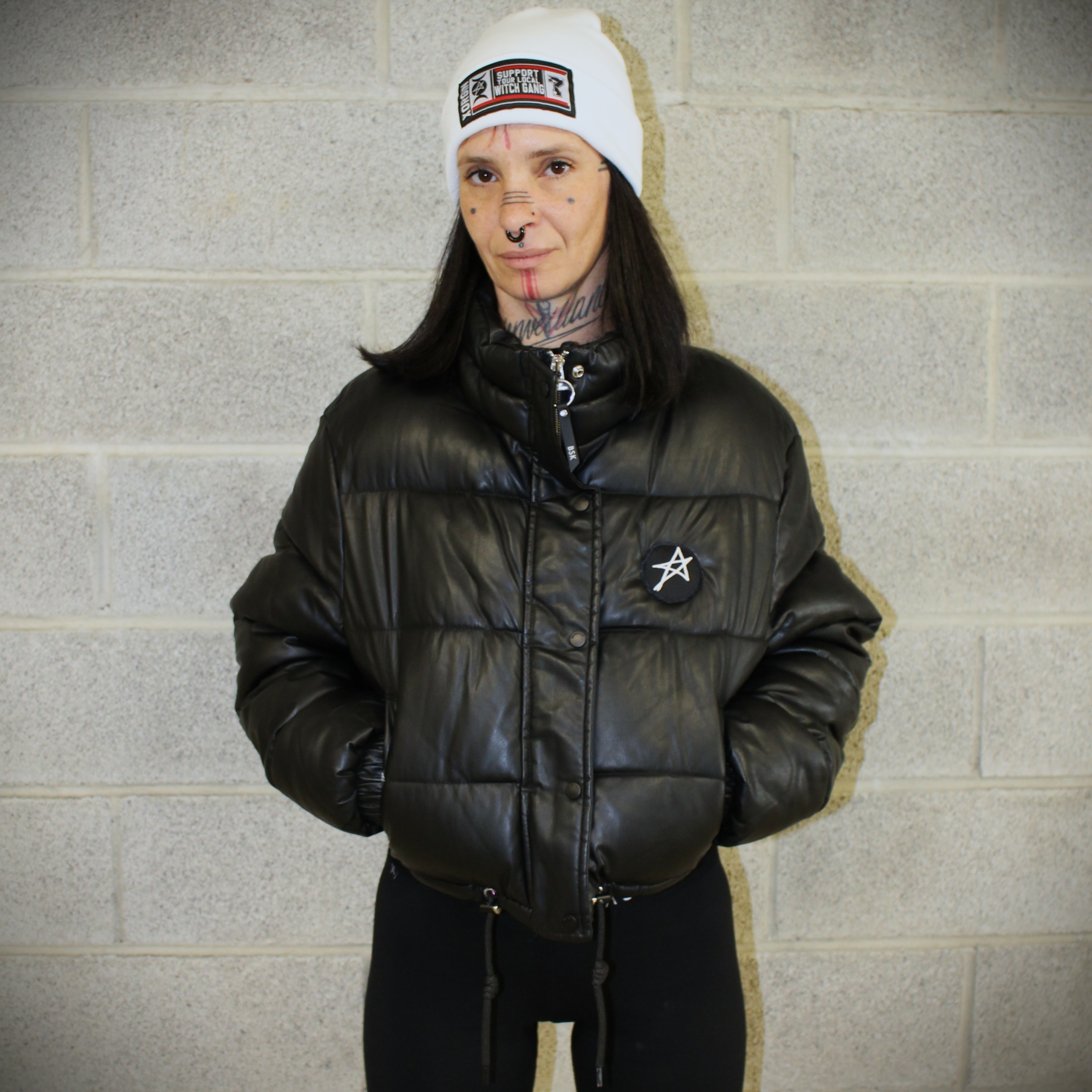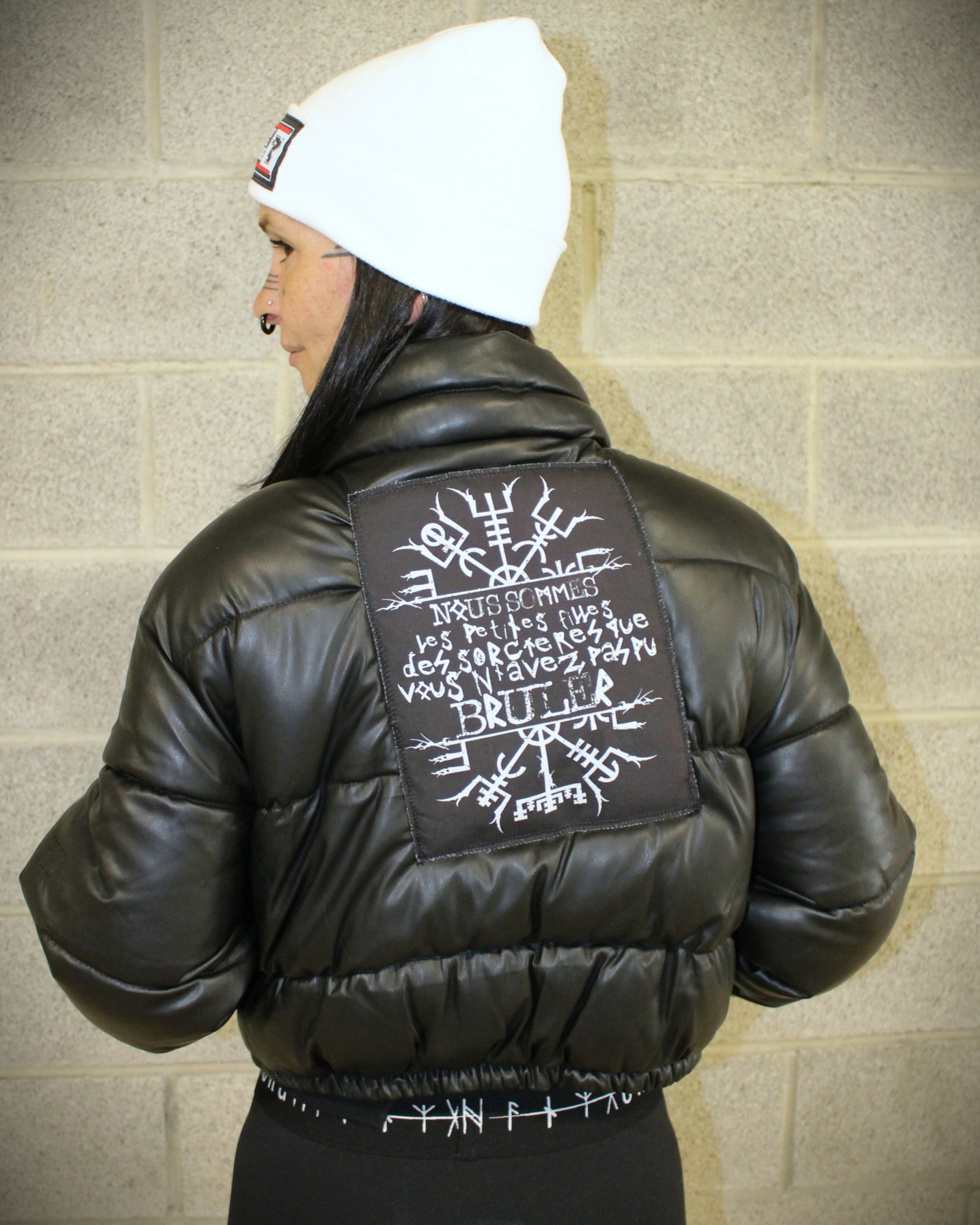 Pièce unique, Doudoune Up’cycling “WITCH POWER” XORGIN WEAR. Effet cuir, patch culte.