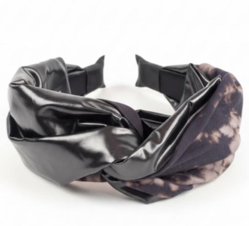 Headband IRMA – Pièce unique, fait main en jersey 100 % coton noir effet javel pink. Collection zéro déchet..
