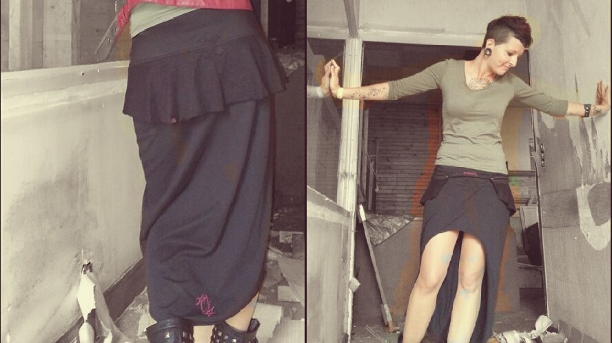 Il y a des passants et une surjupe en Slub coton ( Tissus rongé).