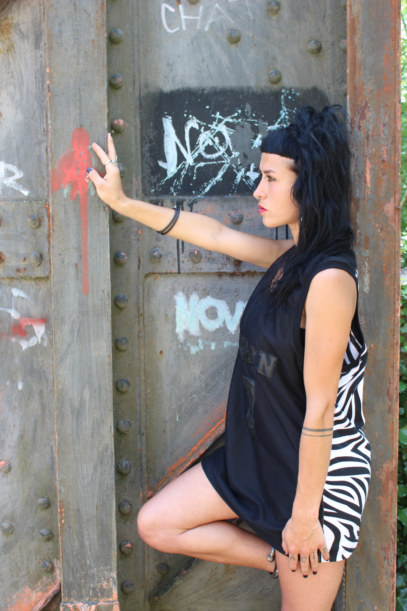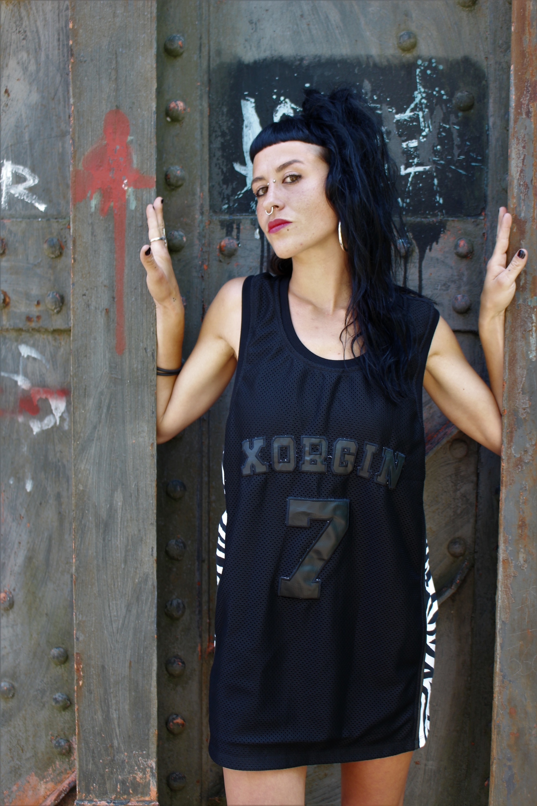 Au dos, emmanchure débardeur dos nageur découpe mesh et piping cuir vegan
