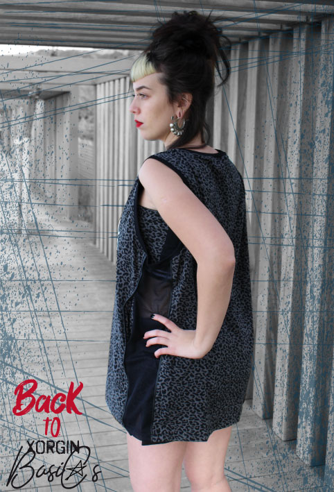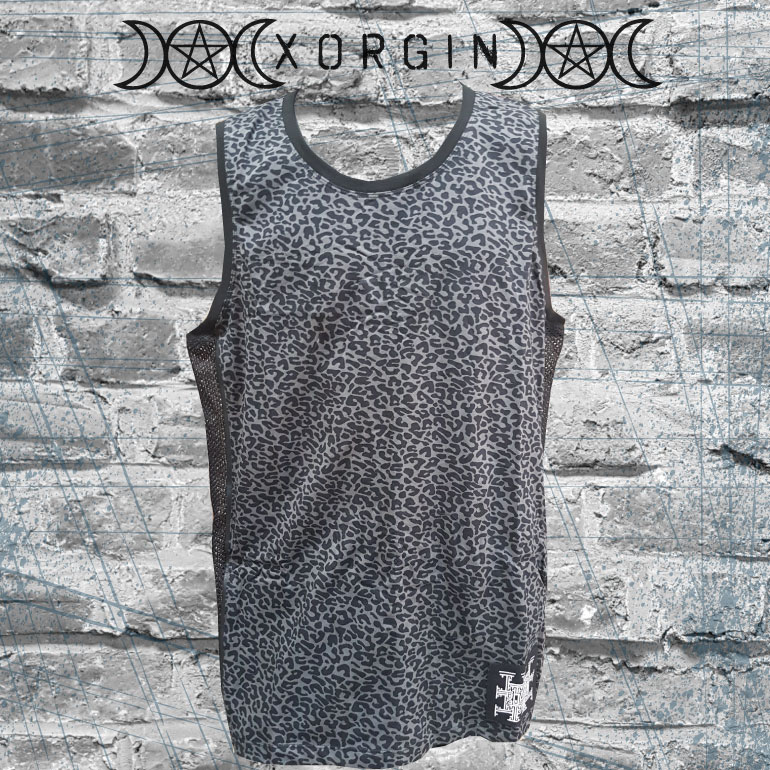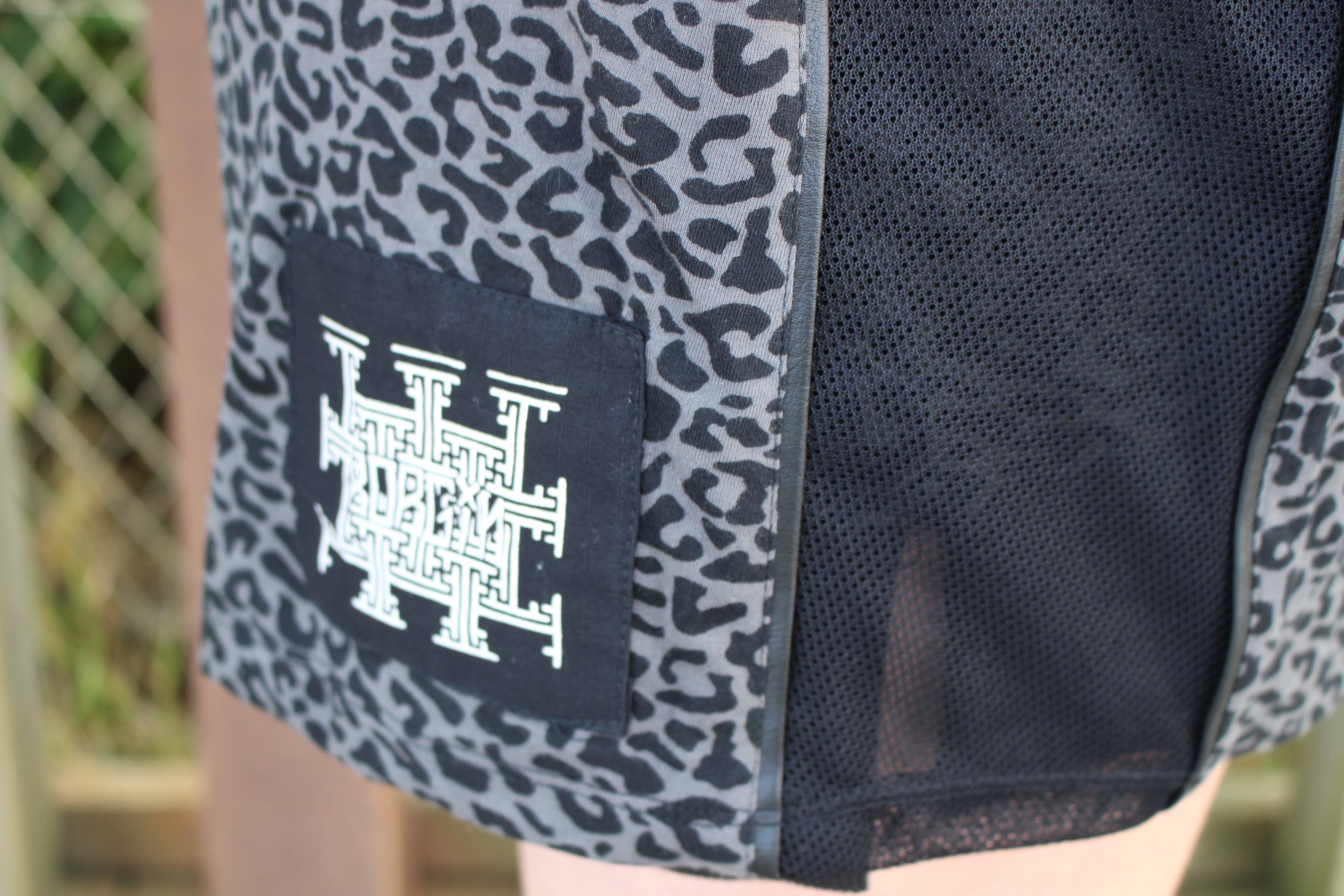Jersey 100% coton Imprimé léopard et Découpes sur les côtés en mesh Noir