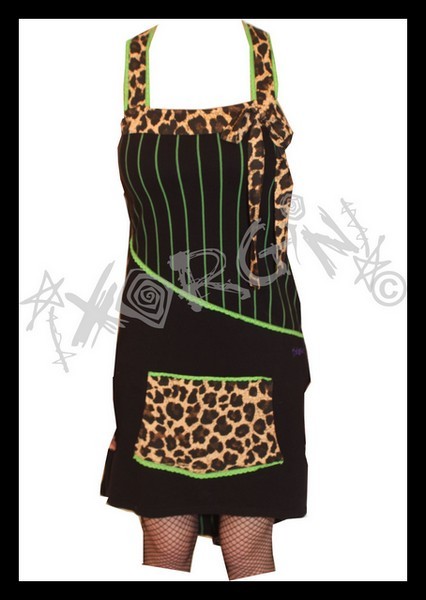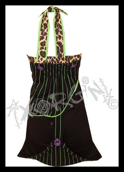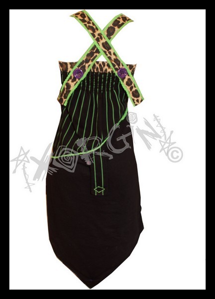 Black – Empiècement imprimé rayure verticale lazert vert + imprimé Léopard + dentelle Lazert vert.