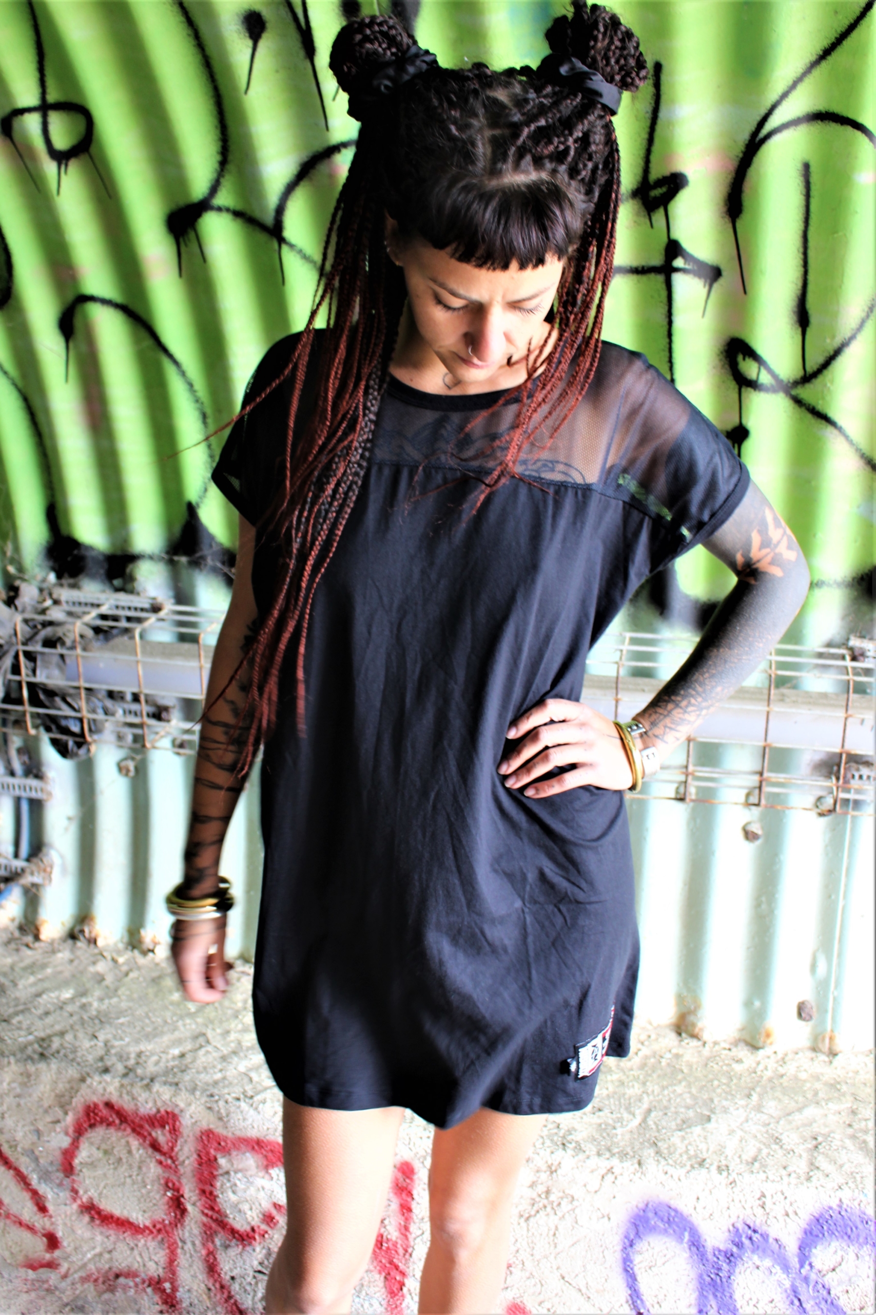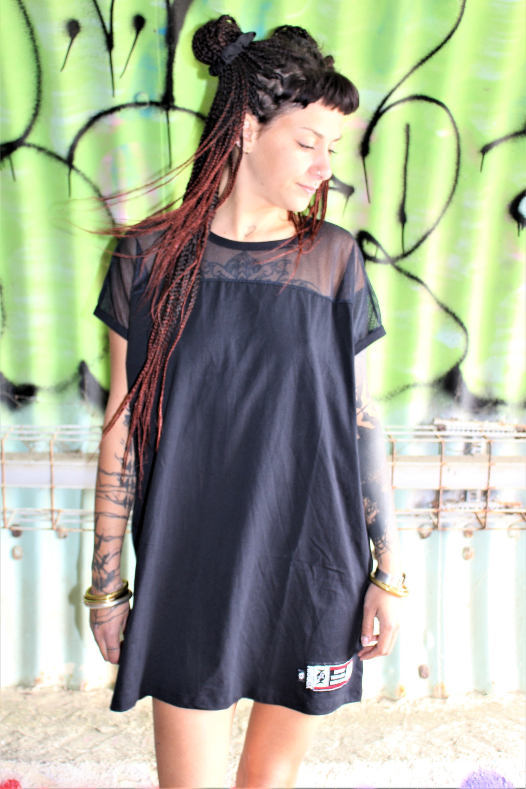 Tee shirt long oversize FullBlack avec Mesh transparent.