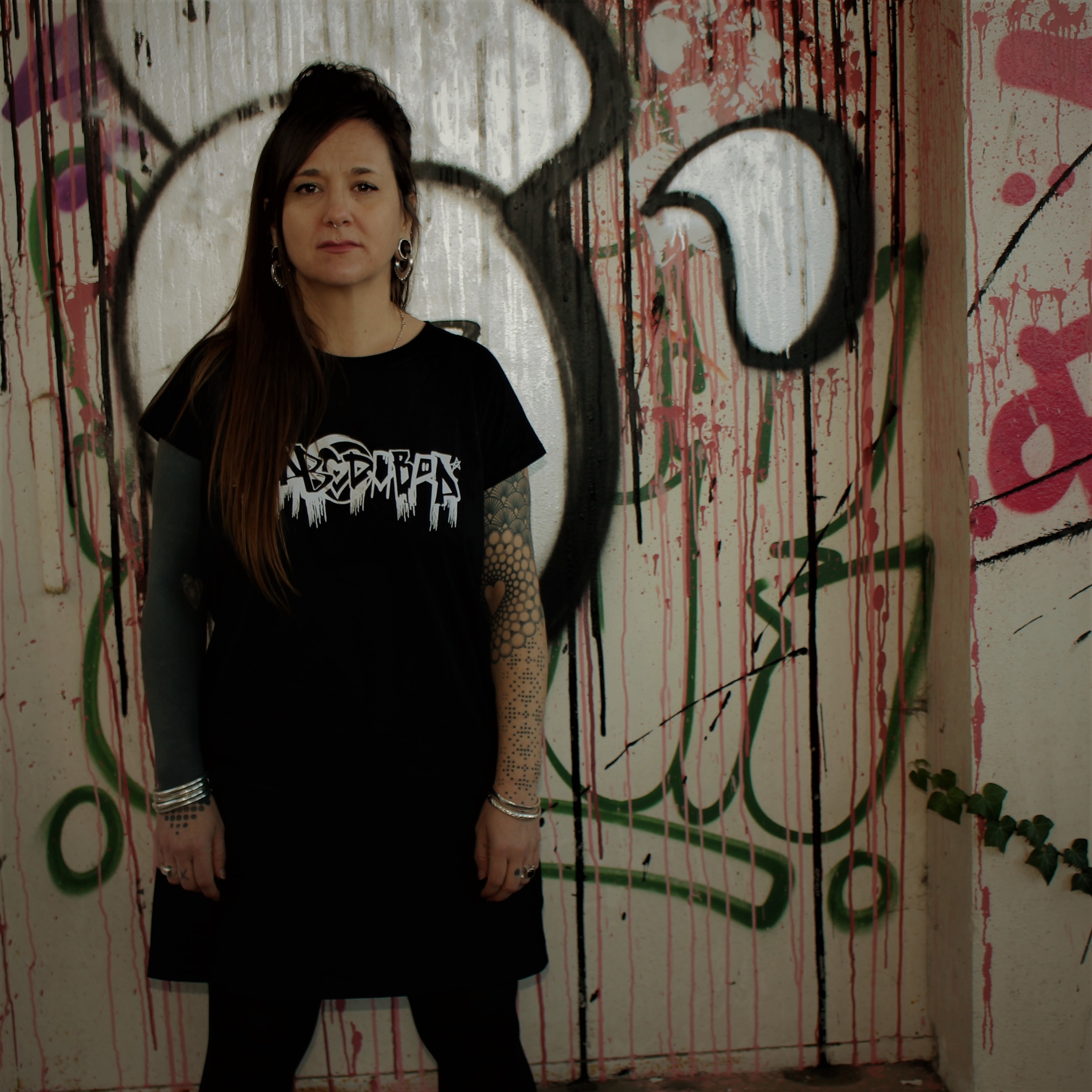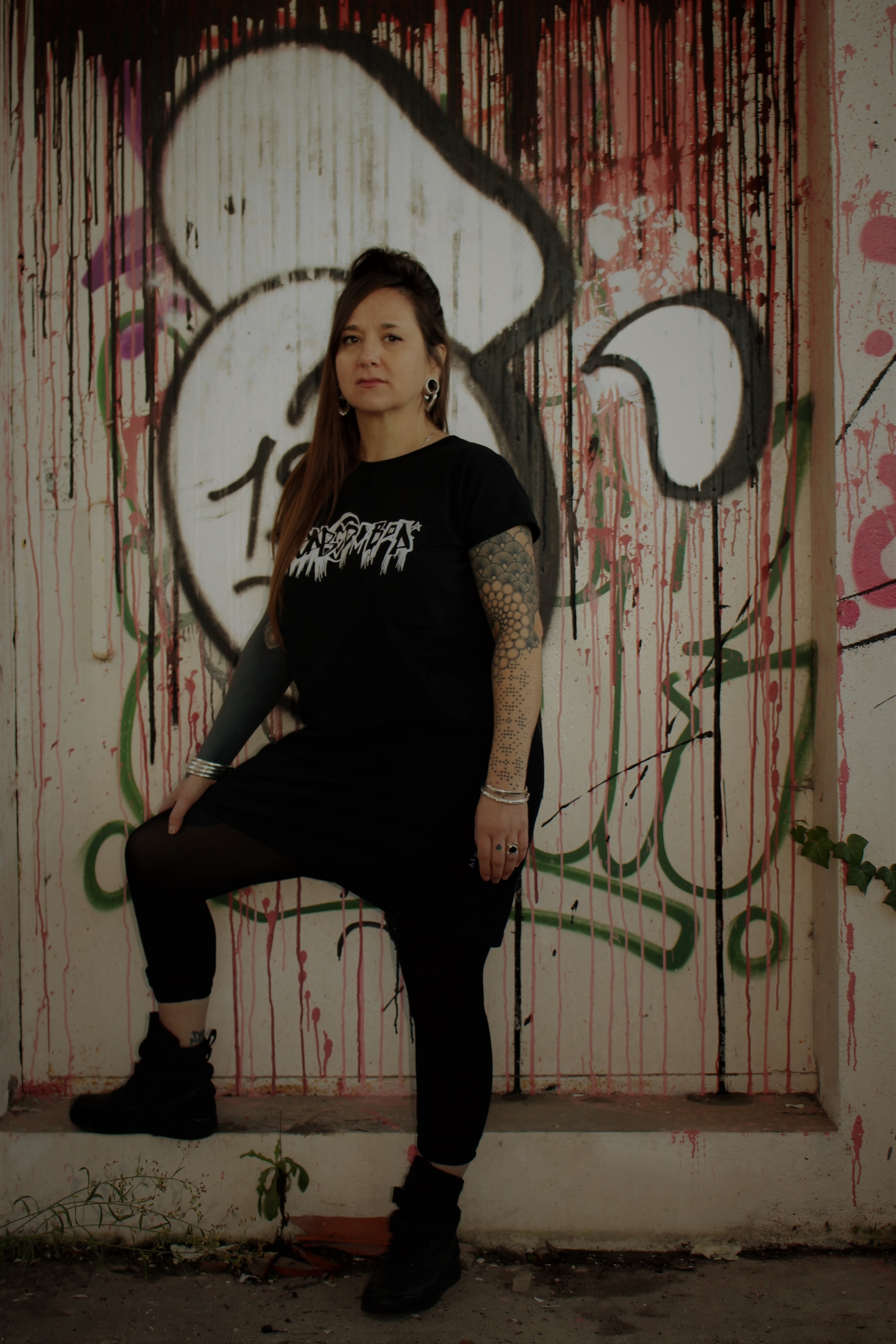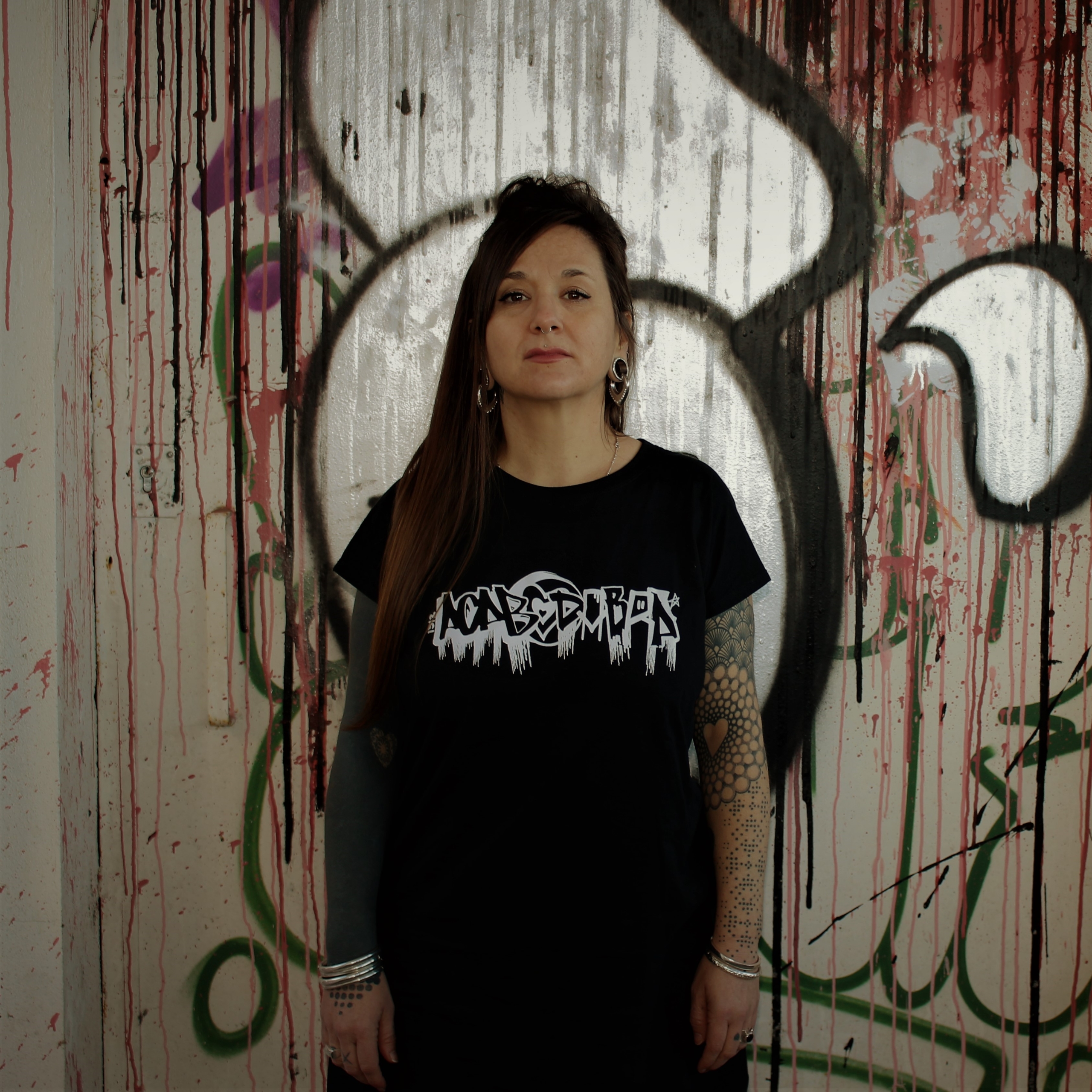 SERIGRAPHIE DEVANT : ACABADABRA blanc sur fond Noir.