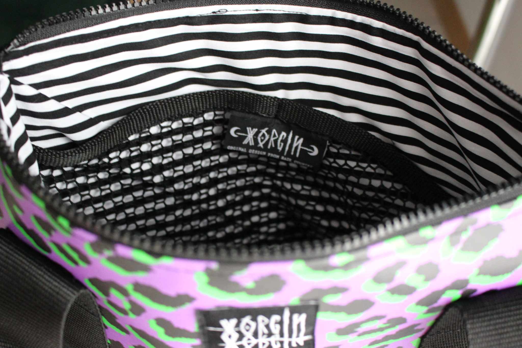 Pièce unique avec ce fabuleux LEO PURPLE/VERT mixé avec une toile cirée Noire