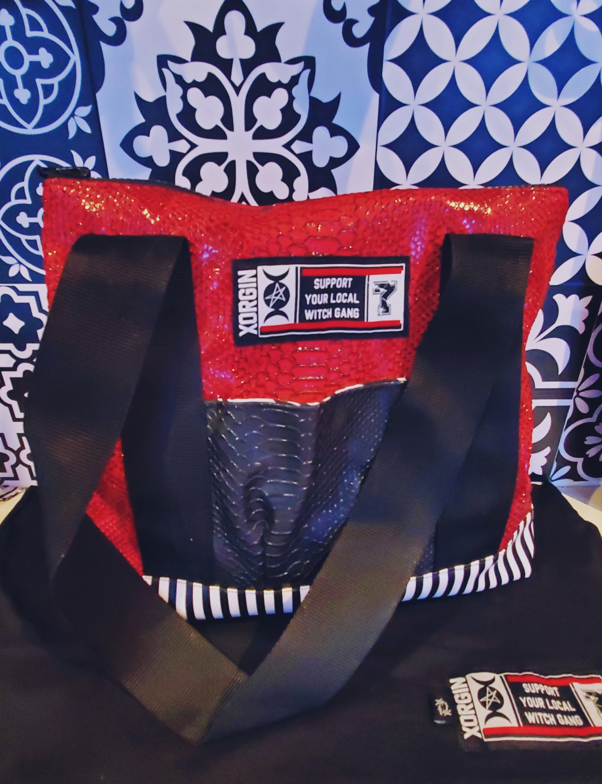 SAC EN CUIR VEGAN MIX REPTILE ROUGE / RAYURE BEETLEJUICE