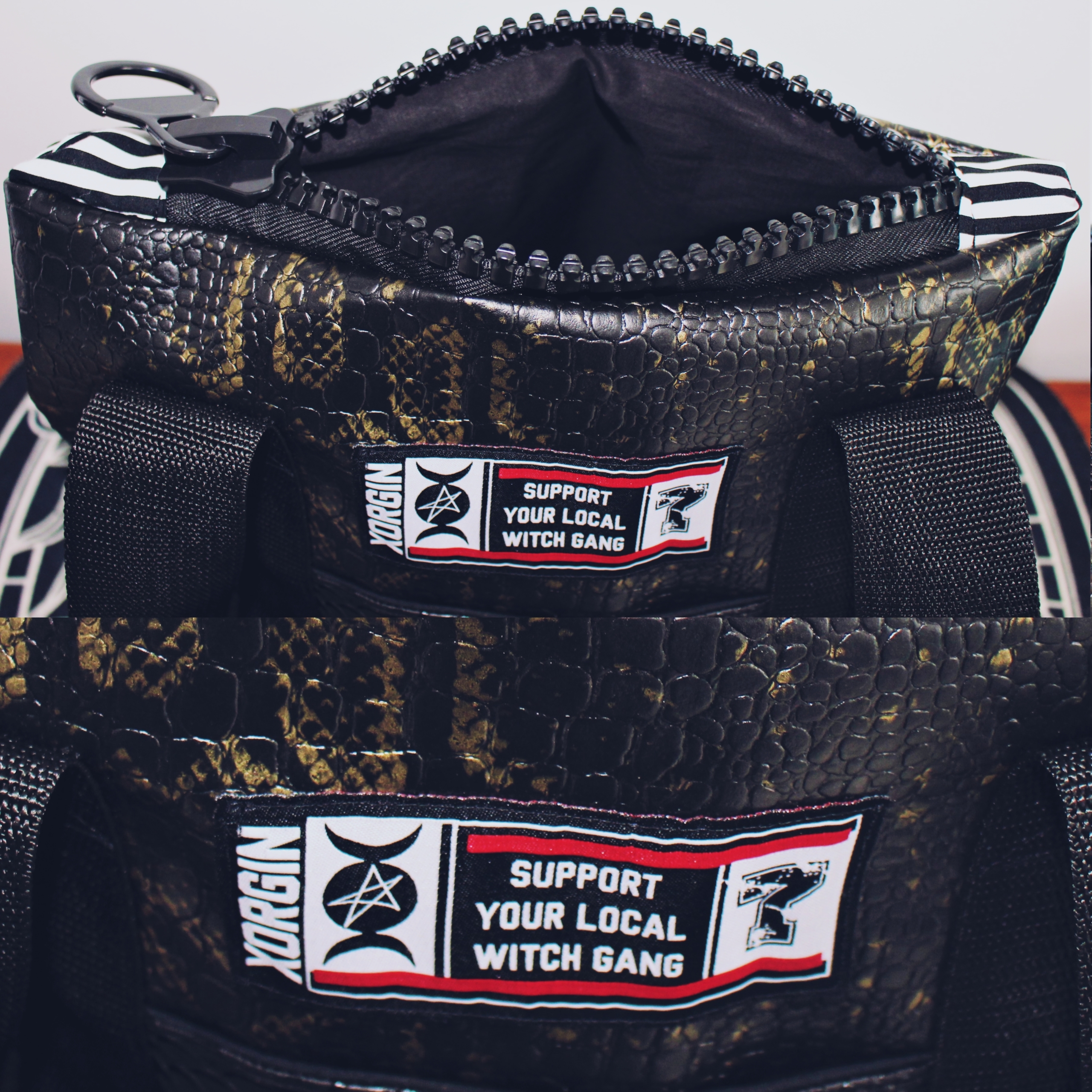 SAC Cuir végan Reptile doré avec empiècement reptile Black