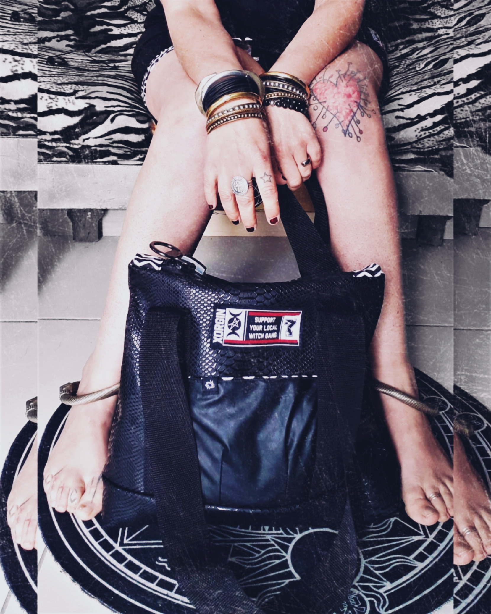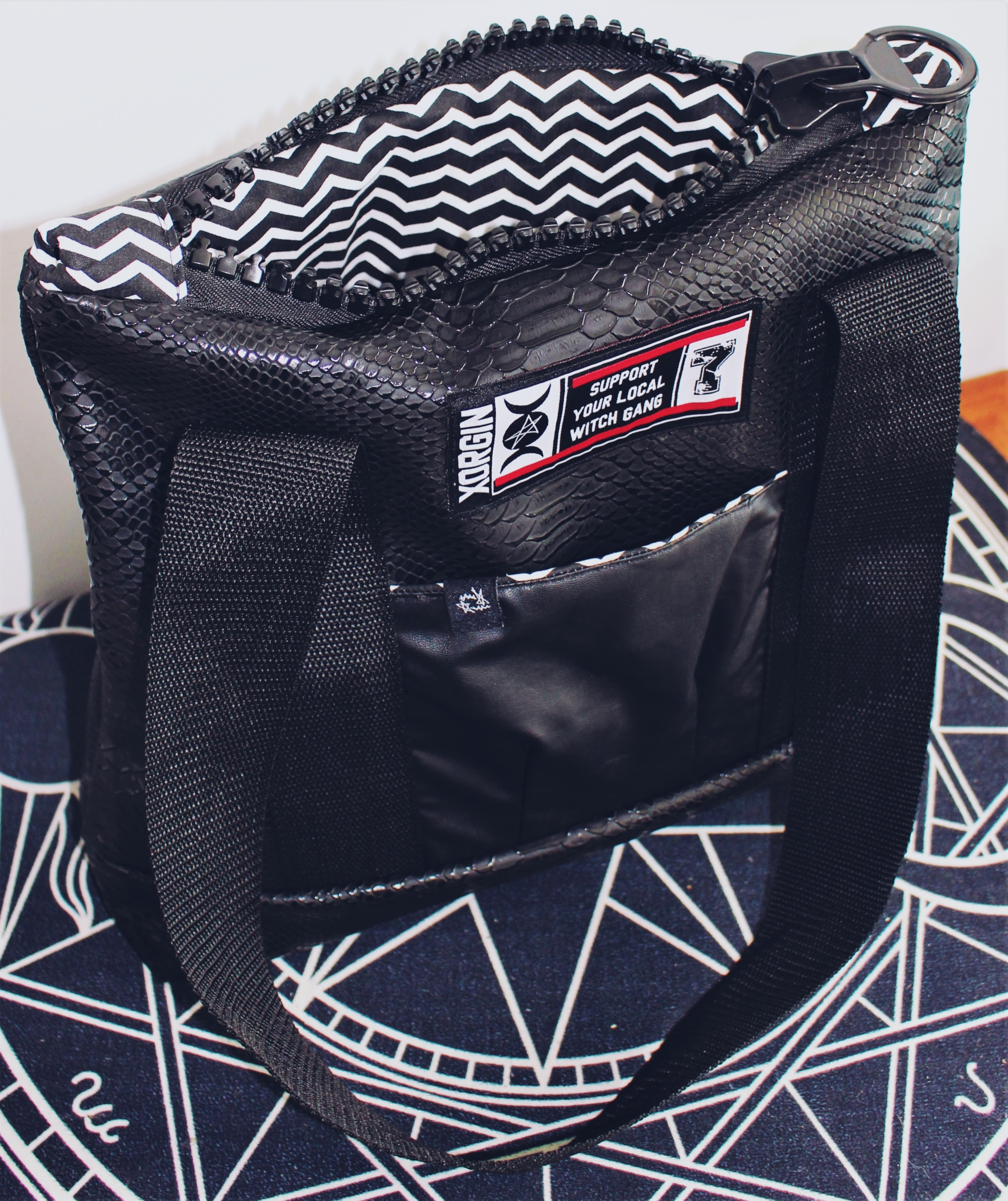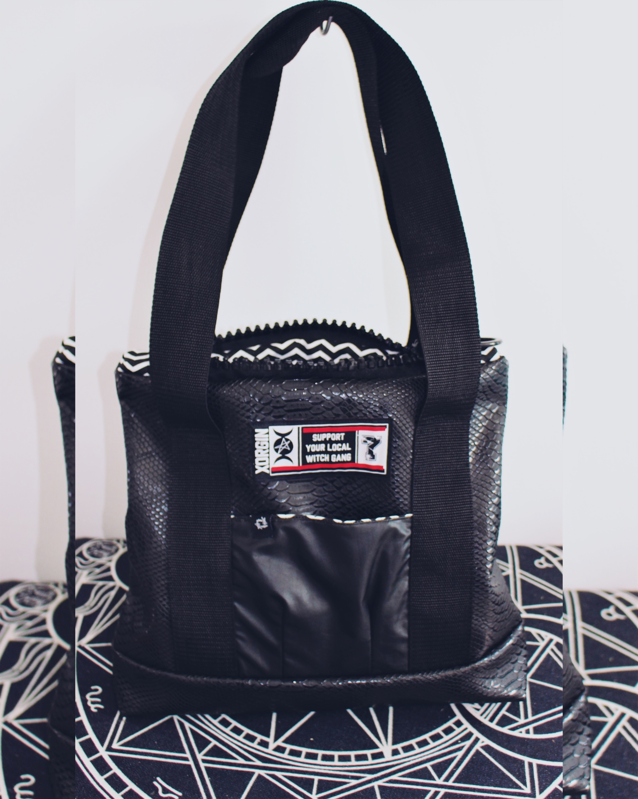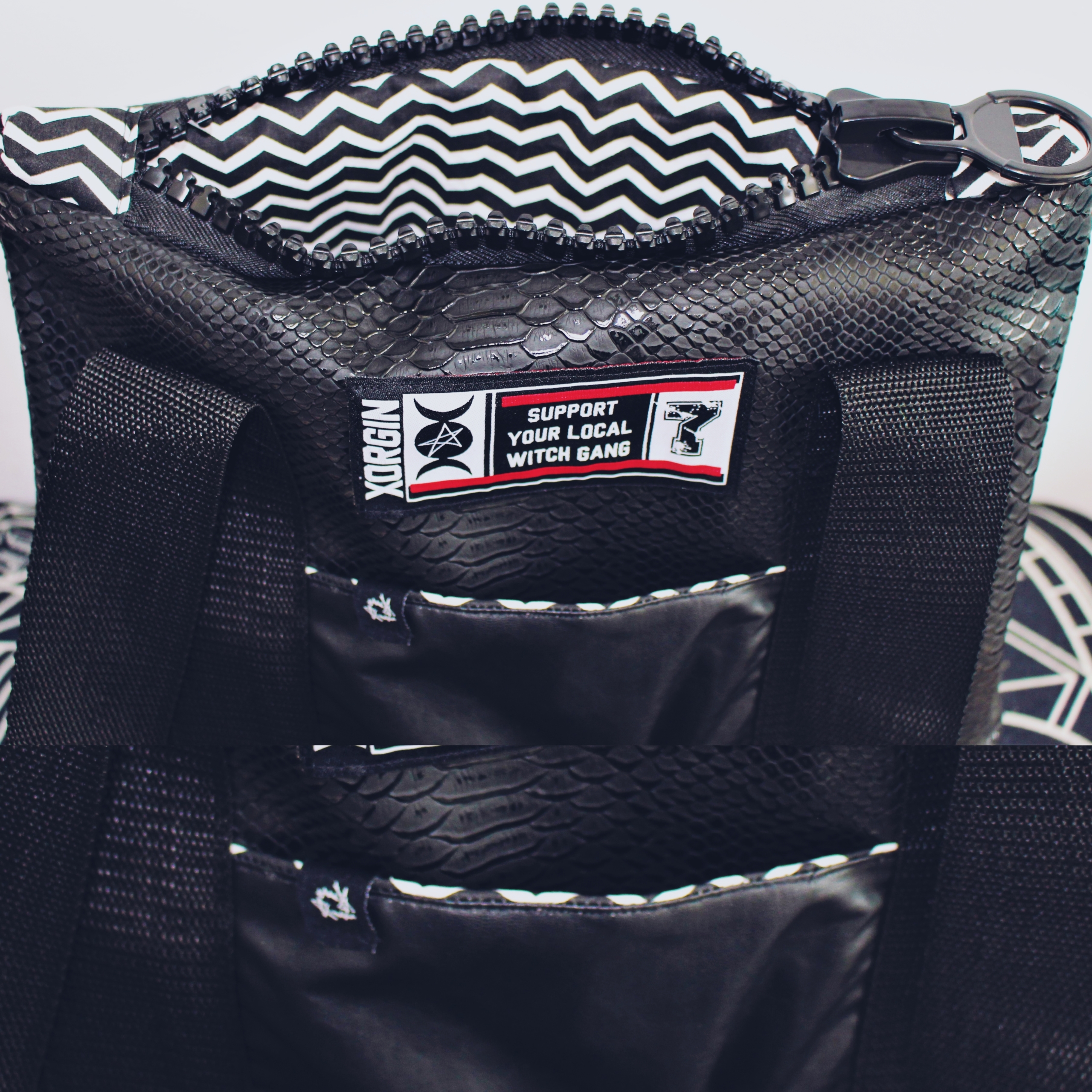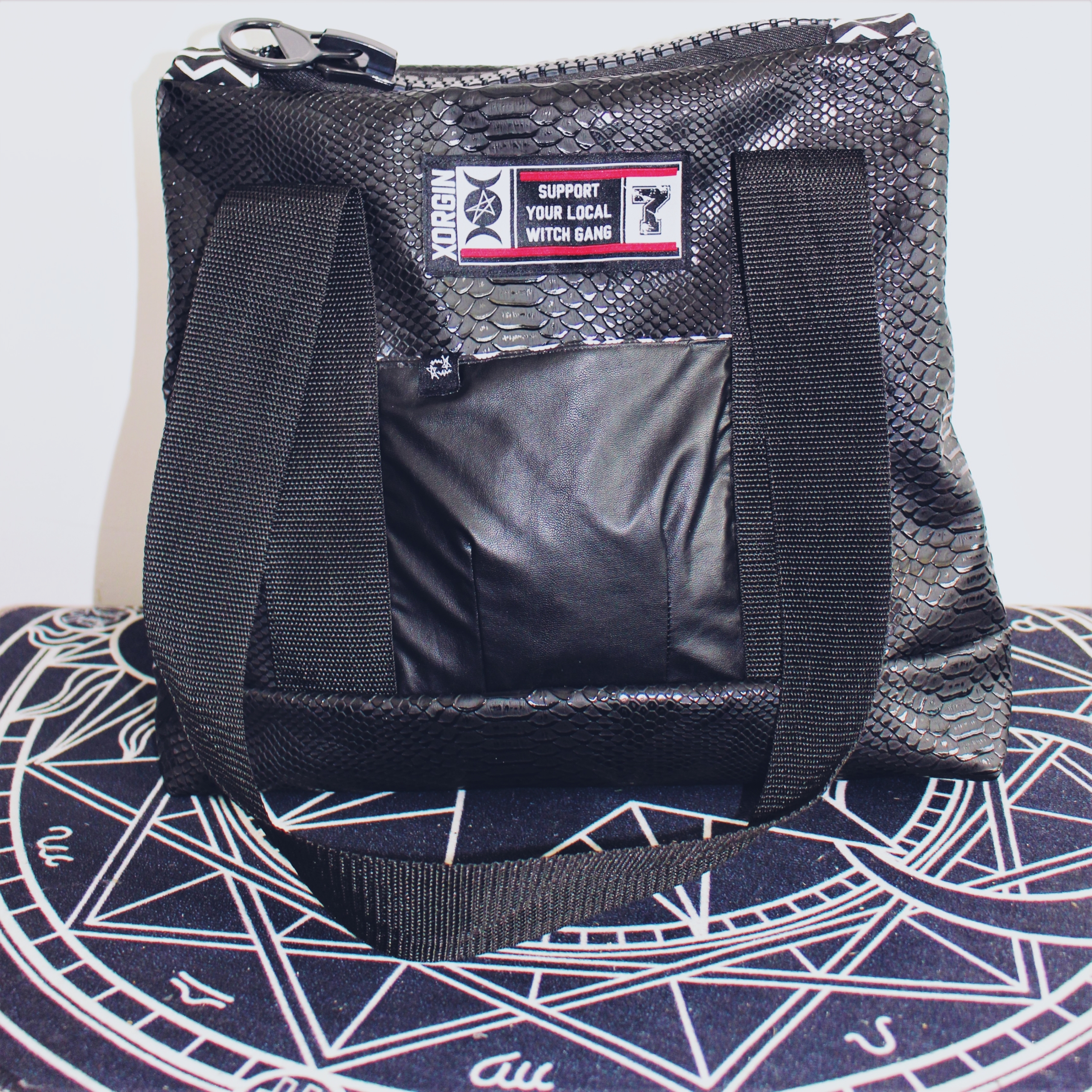 SAC Cuir végan Reptile Black avec empiècement Reptile Black et poche Noire