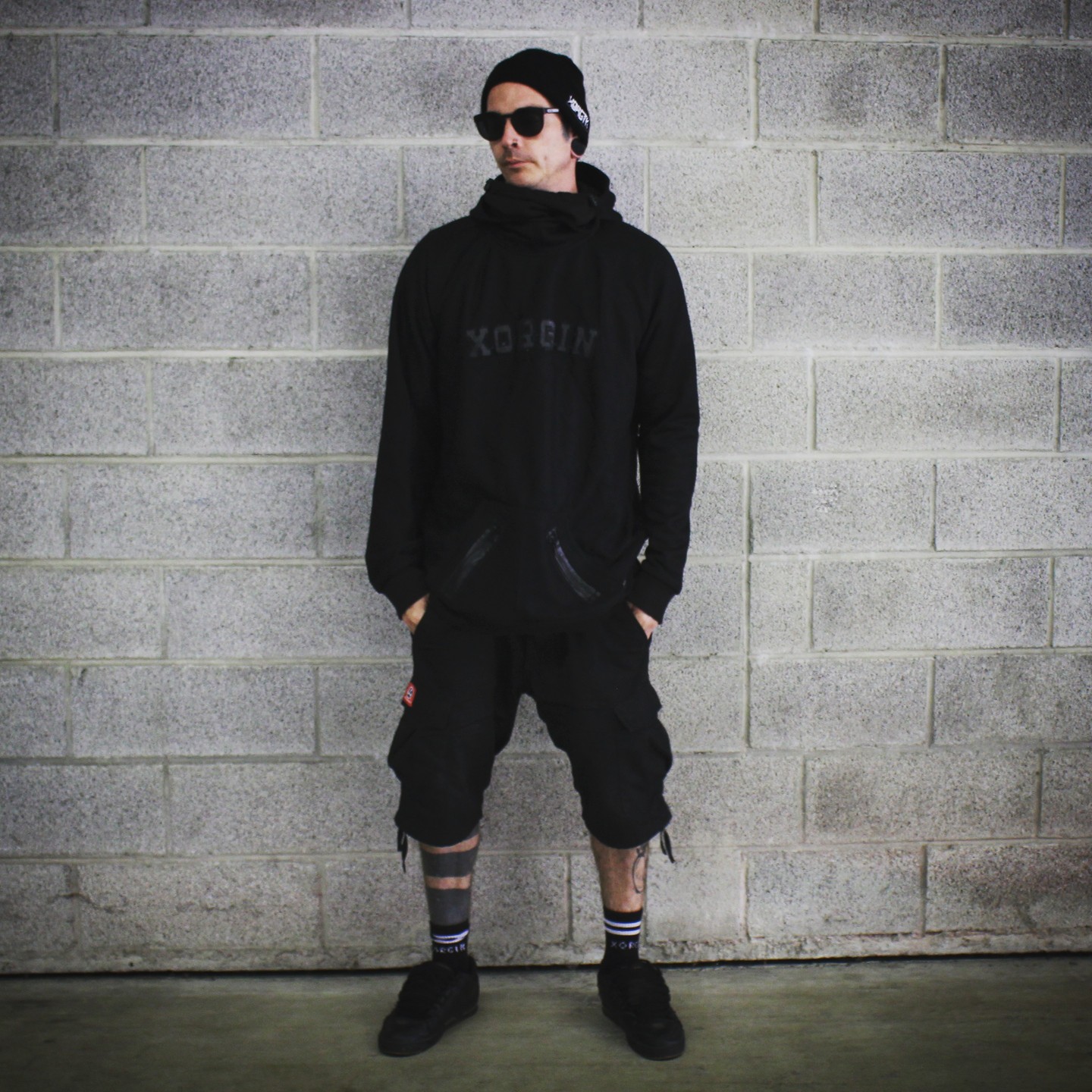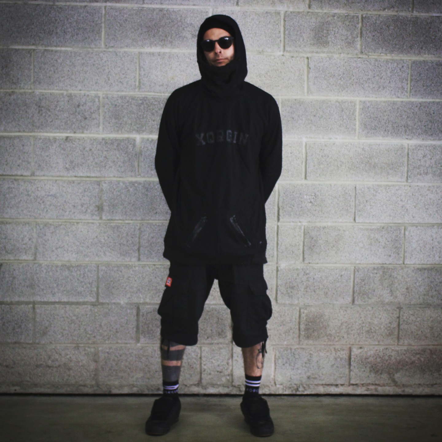 - Devant PATCH XORGIN en cuir végan noir et broderie noir sur noir