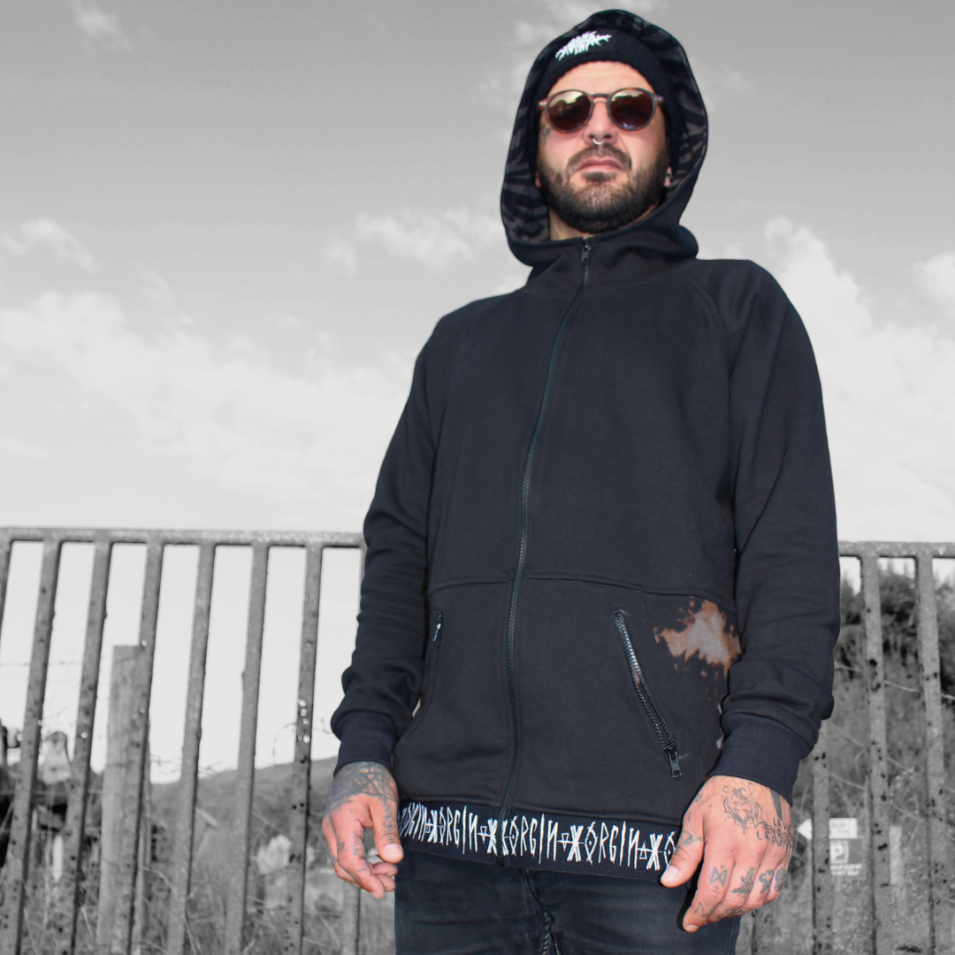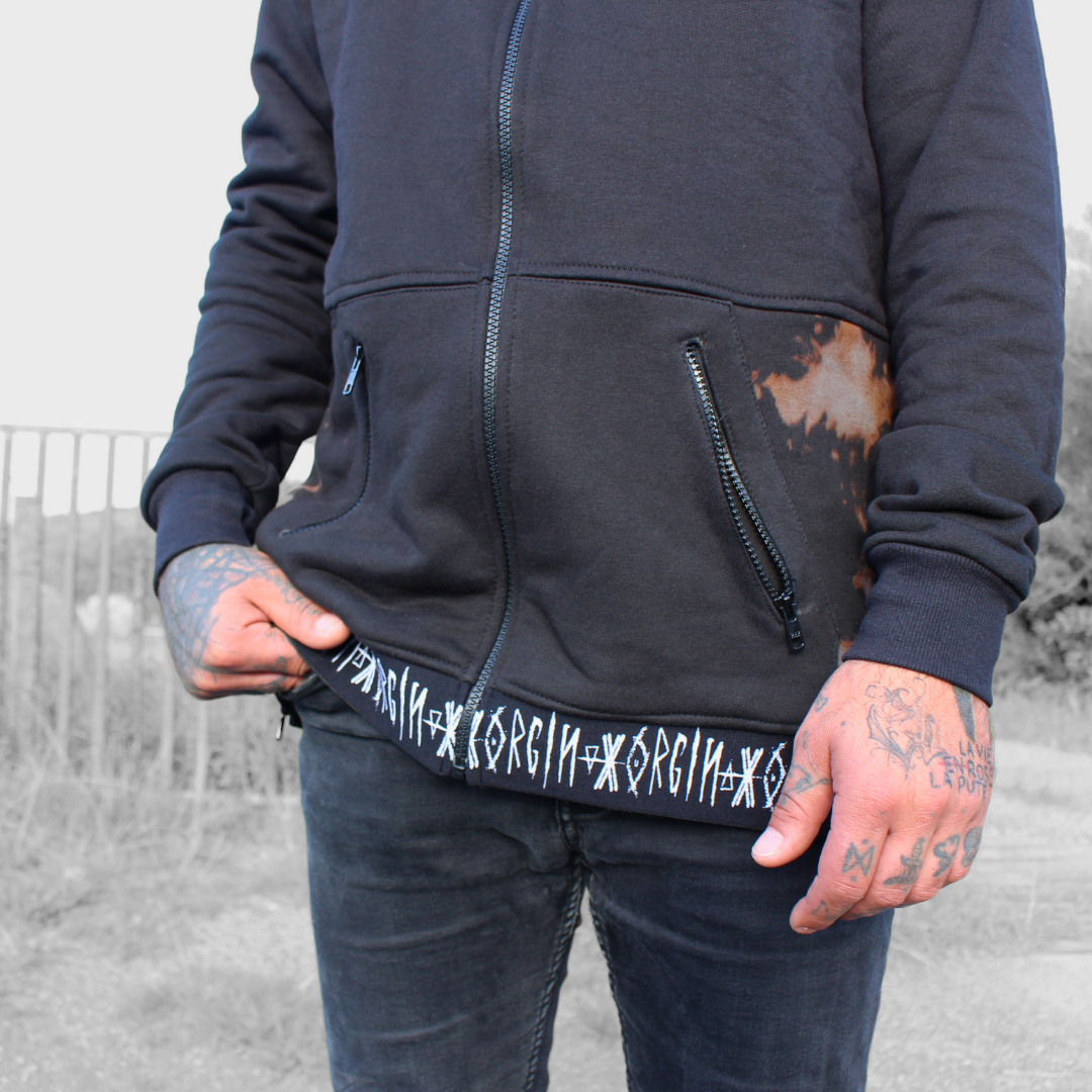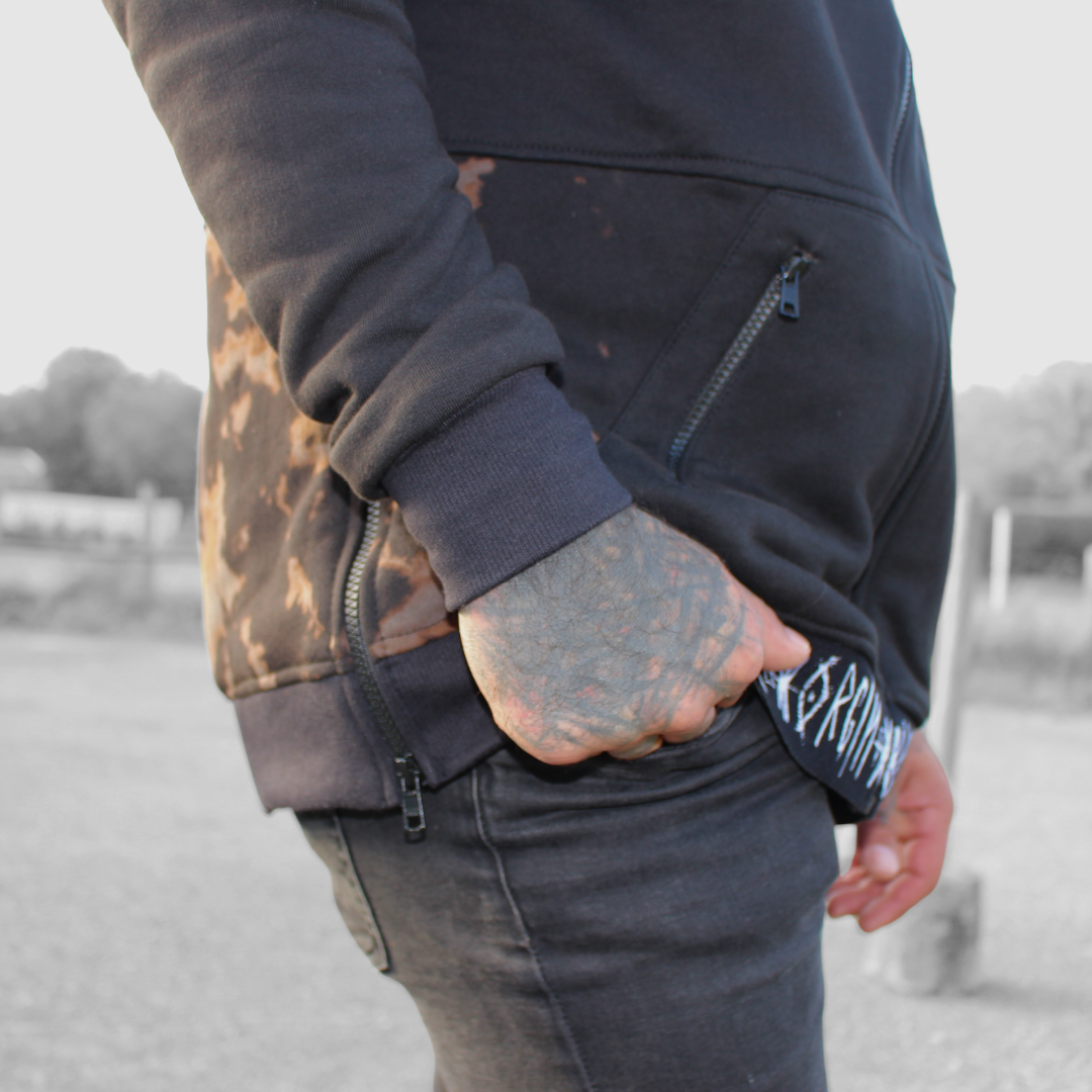XTREM – Sweat shirt Zippé ( ZIP YKK )  Noir / TIE & DYE Dark Grey.