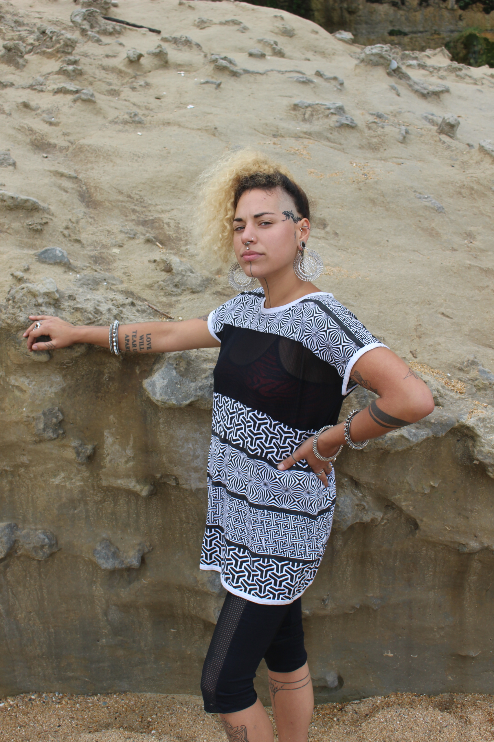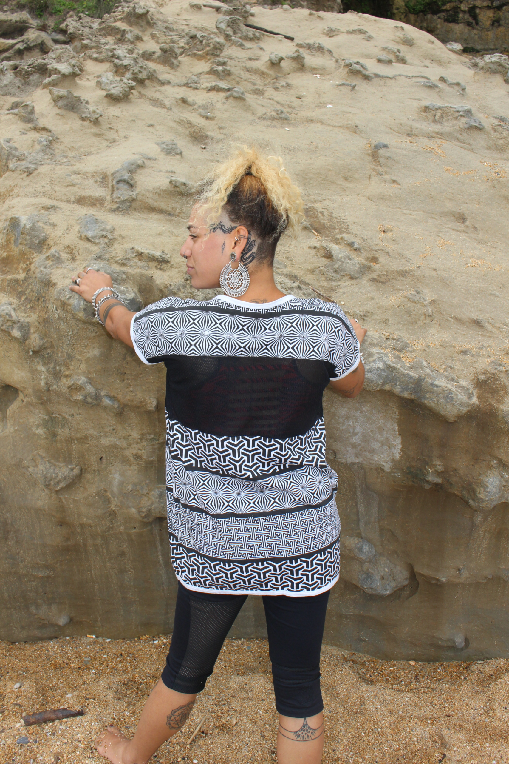 Coupe street large . Corps en mini mesh ou imprimé avec le MYSTIK PATTERN et bande en jersey MYSTIK PATTERN ou Mini mesh au niveau de la poitrine.