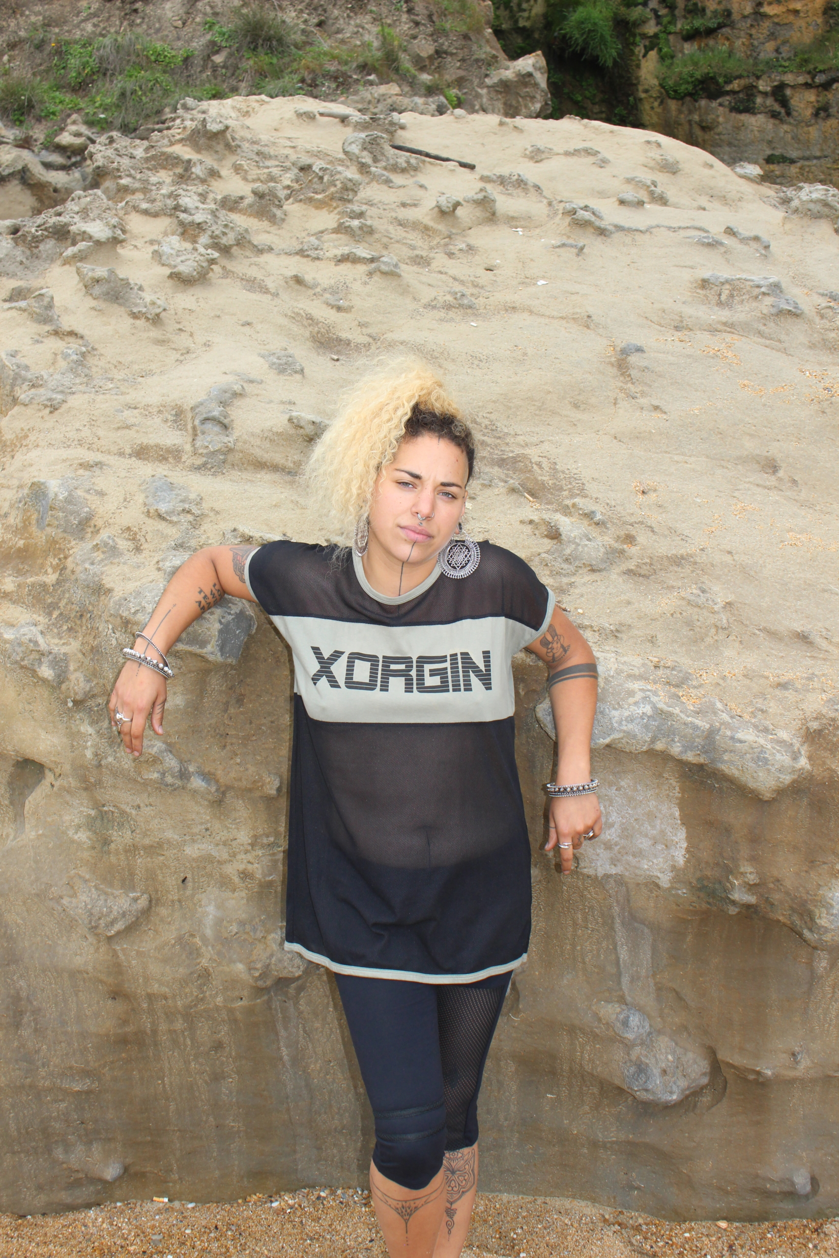 Coupe street large . Corps en mini mesh et bande en jersey sérigraphié au niveau de la poitrine.