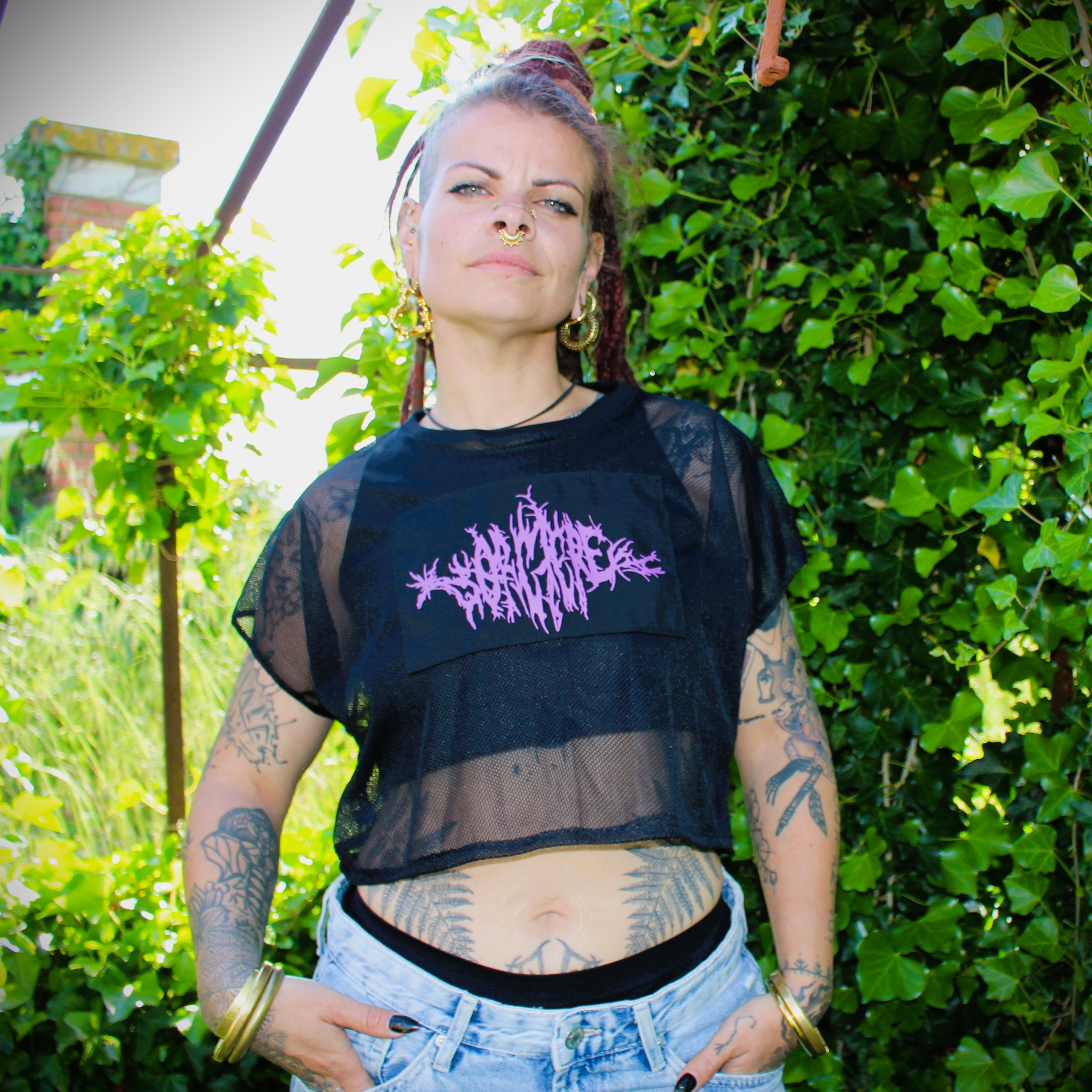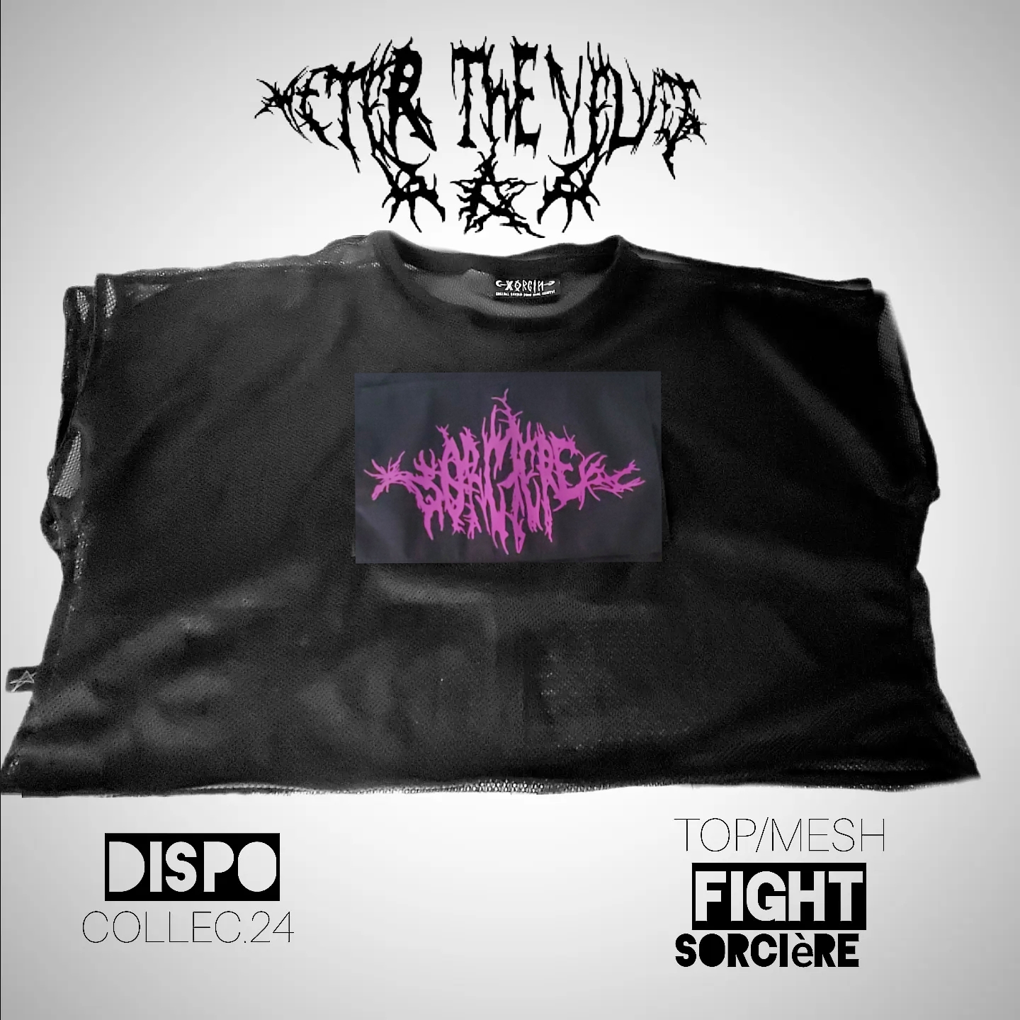 Patch devant en RIPSTOP – serigraphie » SORCIERE » typo trash PURPLE sur Noir