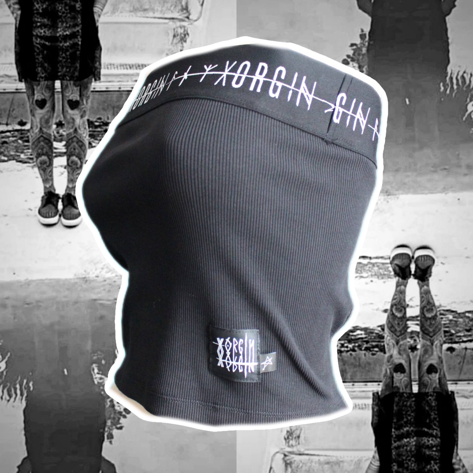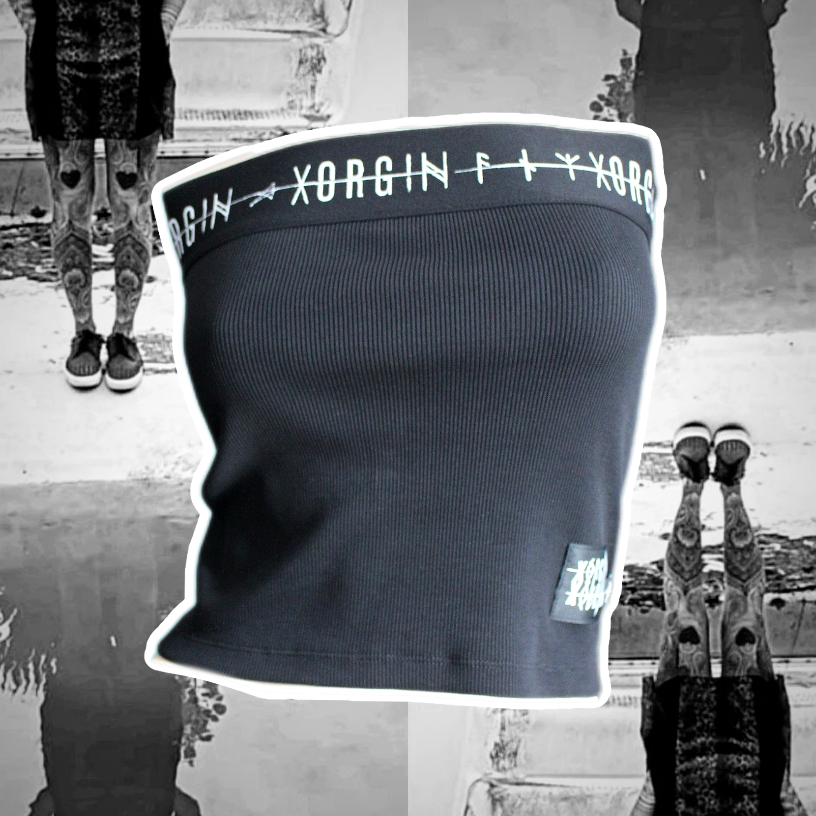 top tube, bustier noir, streetwear, festival fashion, Hellfest outfit, mode alternative, Xorgin, top femme stretch, vêtement free party